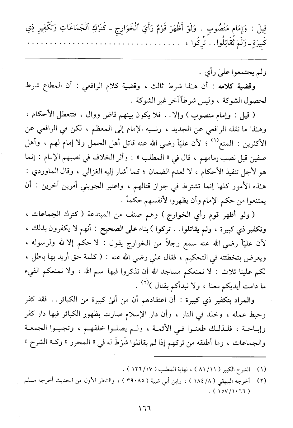 وقضية كلامه: أن هذا شرط ثالث، وقضية كلام الرافعي: أن المطاع شرط لحصول الشوكة، وليس شرطًا آخر غير الشوكة.