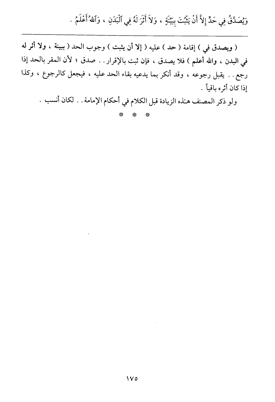 (ويصدق في) إقامة (حد) عليه (إلا أن يثبت) وجوب الحد (ببينة، ولا أثر له في البدن، والله أعلم) فلا يصدق، فإن ثبت بالإقرار .. صدق؛ لأن المقر بالحد إذا رجع .. يقبل رجوعه، وقد أنكر بما يدعيه بقاء الحد عليه، فيجعل كالرجوع، وكذا إذا كان أثره باقيًا.