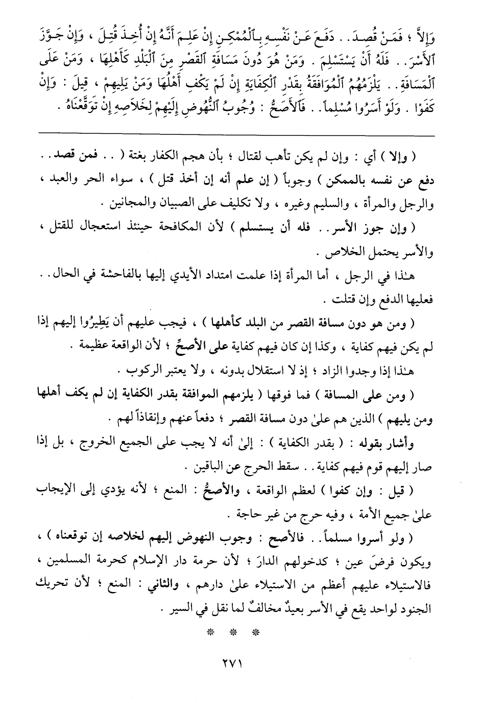 (وإلا) أي: وإن لم يكن تأهب لقتال؛ بأن هجم الكفار بغتة (. . فمن قصد. . دفع عن نفسه بالممكن) وجوبًا (إن علم أنه إن أخذ قتل)، سواء الحر والعبد، والرجل والمرأة، والسليم وغيره، ولا تكليف على الصبيان والمجانين.
