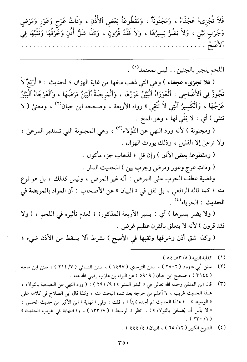 (وذات عرج وعور ومرض وجرب بين) للحديث المار.