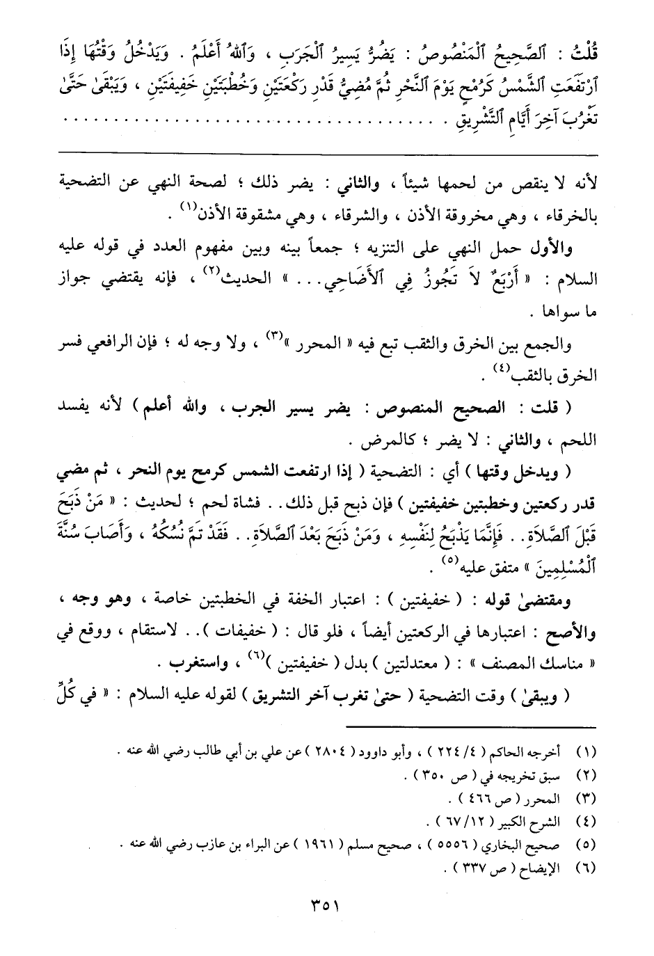 والأول حمل النهي على التنزيه؛ جمعًا بينه وبين مفهوم العدد في قوله عليه السلام: "أَرْبَع لَا تَجُوزُ فِي الأَضَاحِي ... " الحديث (٢)، فإنه يقتضي جواز ما سواها.