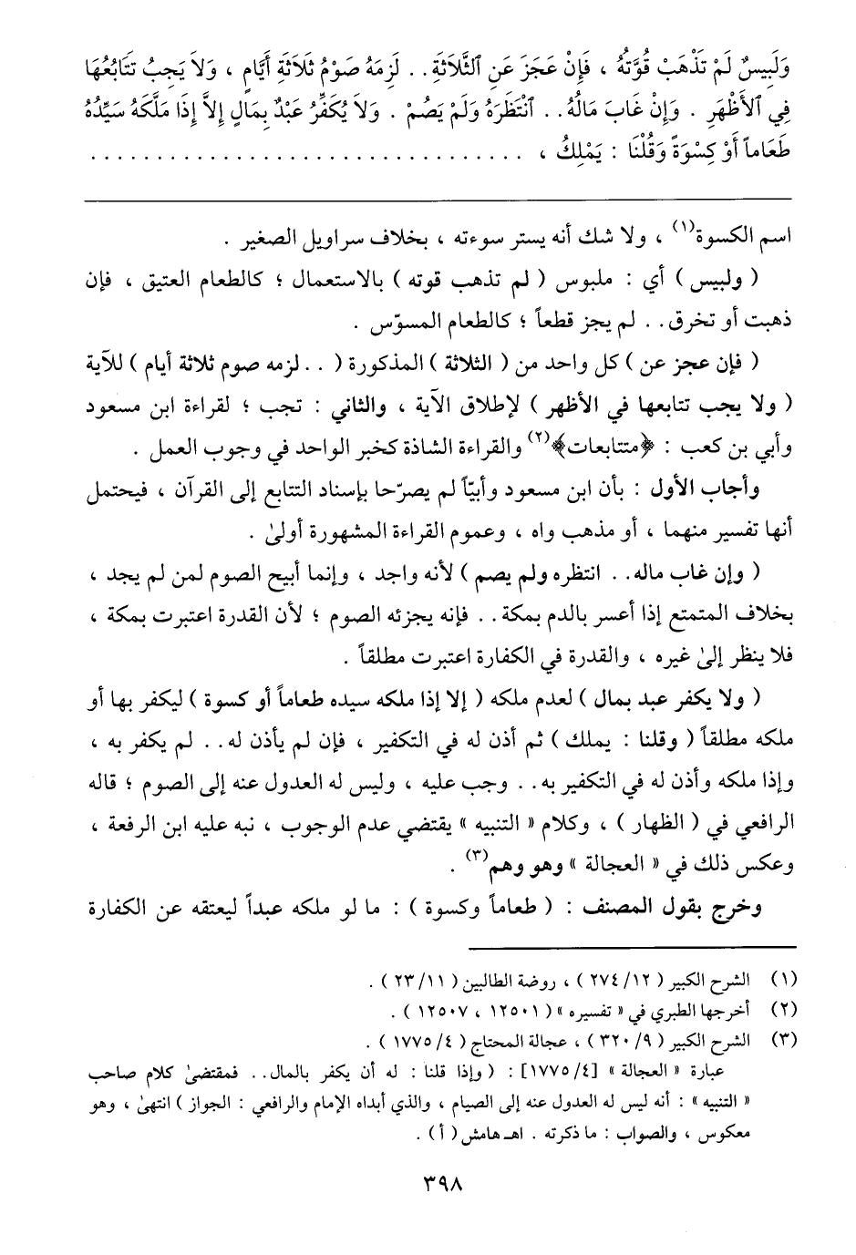 (٣) الشرح الكبير (٩/ ٣٢٠)، عجالة المحتاج (٤/ ١٧٧٥).