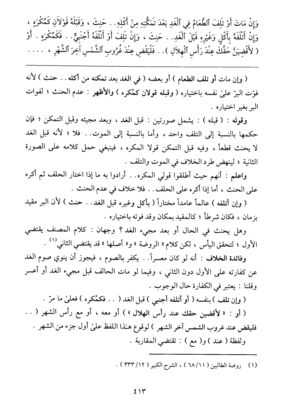 (أو: "لأقضين حقك عند رأس الهلال") أو معه، أو مع رأس الشهر ( .. فليقض عند غروب الشمس آخر الشهر) لوقوع هذا اللفظ على أول جزء من الشهر.