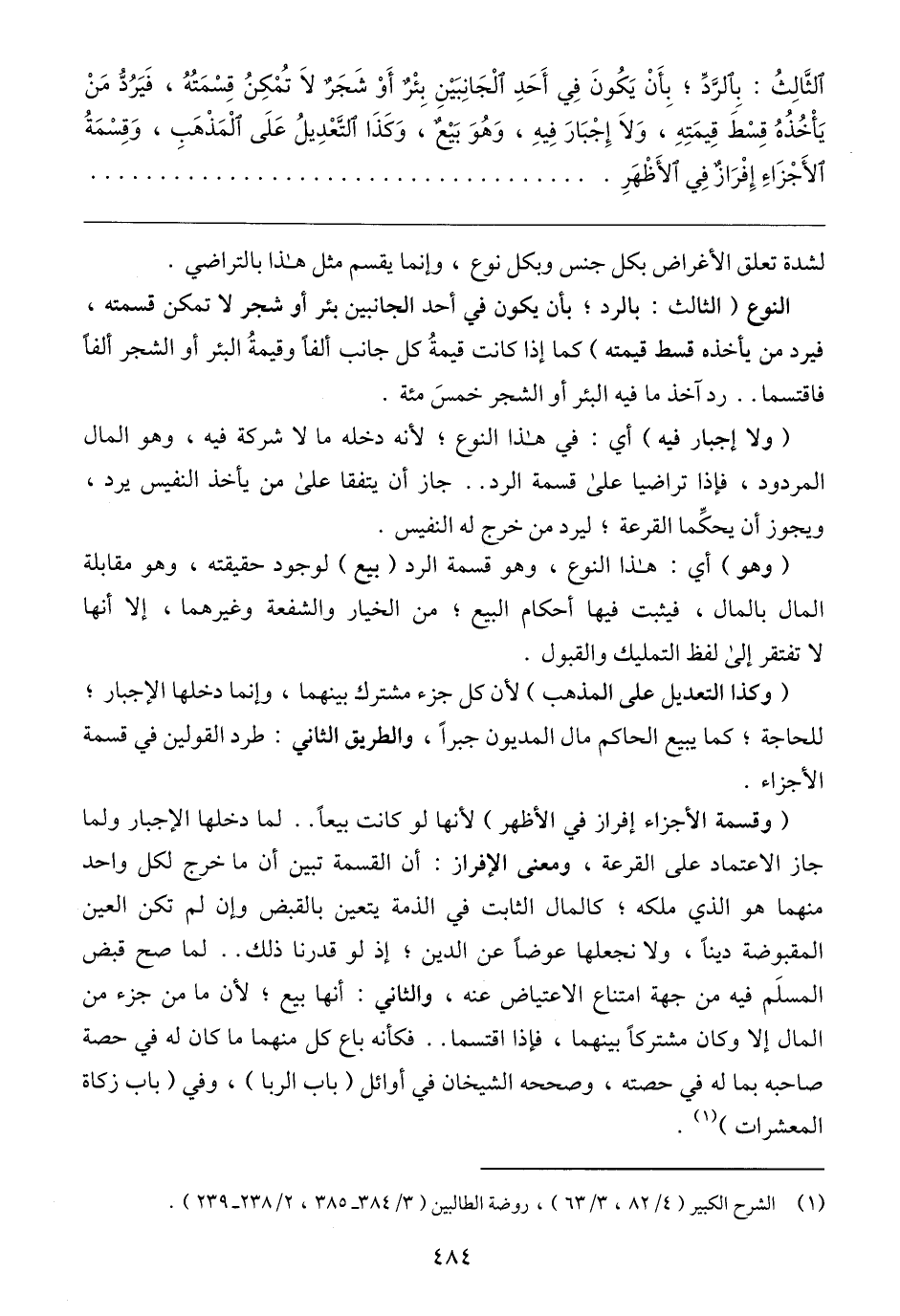 (١) الشرح الكبير (٤/ ٨٢، ٣/ ٦٣)، روضة الطالبين (٣/ ٣٨٤ - ٣٨٥، ٢/ ٢٣٨ - ٢٣٩).
