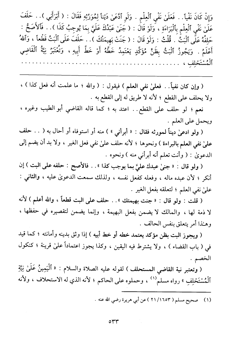 (وتعتبر نية القاضي المستحلف) لقوله عليه الصلاة والسلام: "الْيَمِينُ عَلَى نِيَّةِ الْمُسْتَحْلِفِ" رواه مسلم (١)، وحملوه على الحاكم؛ لأنه الذي له الاستحلاف، ولأنه