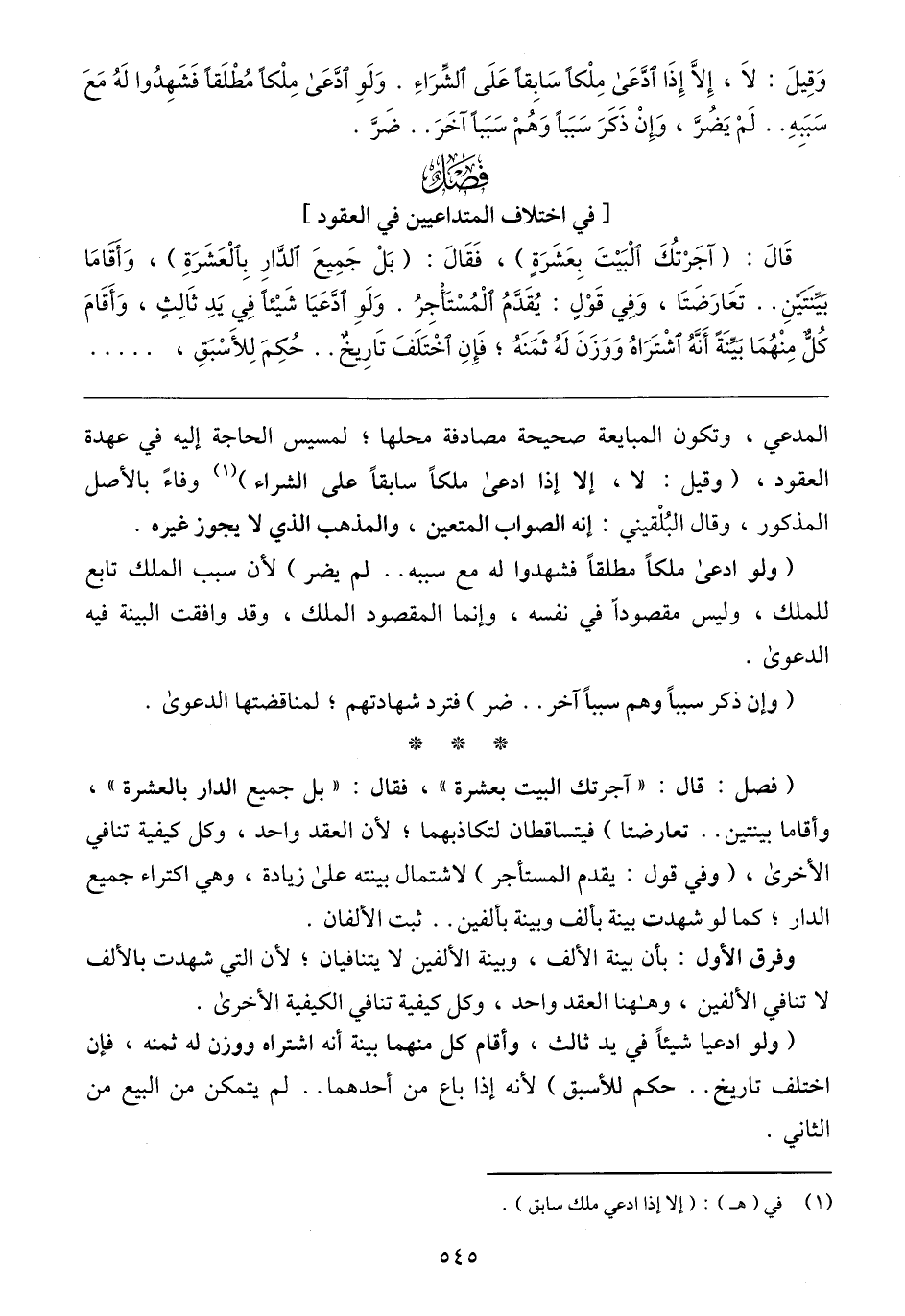 (فصل: قال: "آجرتك البيت بعشرة"، فقال: "بل جميع الدار بالعشرة"، وأقاما بينتين .. تعارضتا) فيتساقطان لتكاذبهما؛ لأن العقد واحد، وكل كيفية تنافي الأخرى، (وفي قول: يقدم المستأجر) لاشتمال بينته على زيادة، وهي اكتراء جميع الدار؛ كما لو شهدت بينة بألف وبينة بألفين .. ثبت الألفان.