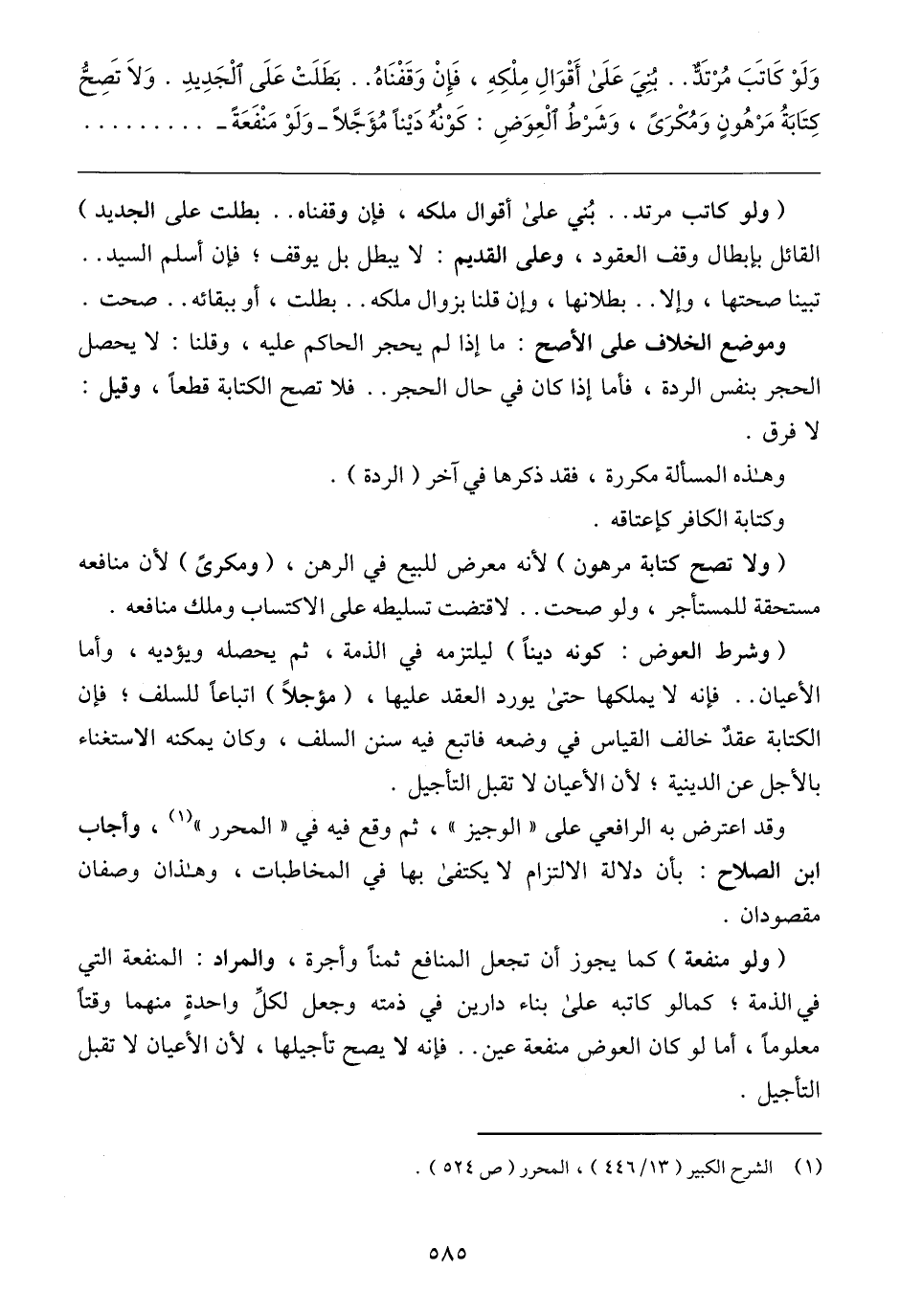 (١) الشرح الكبير (١٣/ ٤٤٦)، المحرر (ص ٥٢٤).