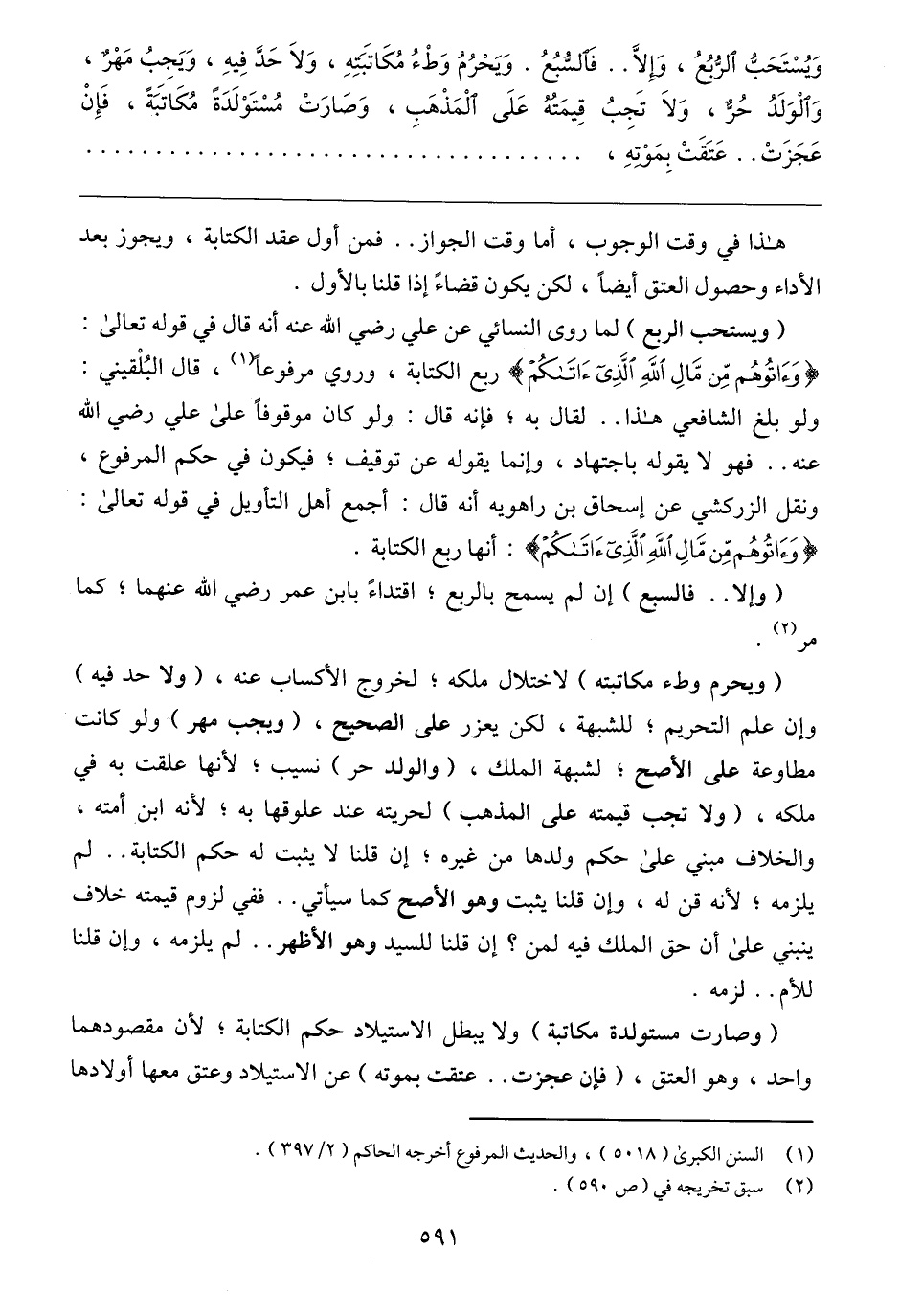 (ويستحب الربع) لما روى النسائي عن علي رضي الله عنه أنه قال في قوله تعالى: {وَآتُوهُمْ مِنْ مَالِ اللَّهِ الَّذِي آتَاكُمْ} ربع الكتابة، وروي مرفوعًا (١)، قال البُلْقيني: ولو بلغ الشافعي هذا. . لقال به، فإنه قال: ولو كان موقوفًا على علي رضي الله عنه. . فهو لا يقوله باجتهاد، وإنما يقوله عن توقيف؛ فيكون في حكم المرفوع، ونقل الزركشي عن إسحاق بن راهويه أنه قال: أجمع أهل التأويل في قوله تعالى: {وَآتُوهُمْ مِنْ مَالِ اللَّهِ الَّذِي آتَاكُمْ}: أنها ربع الكتابة.