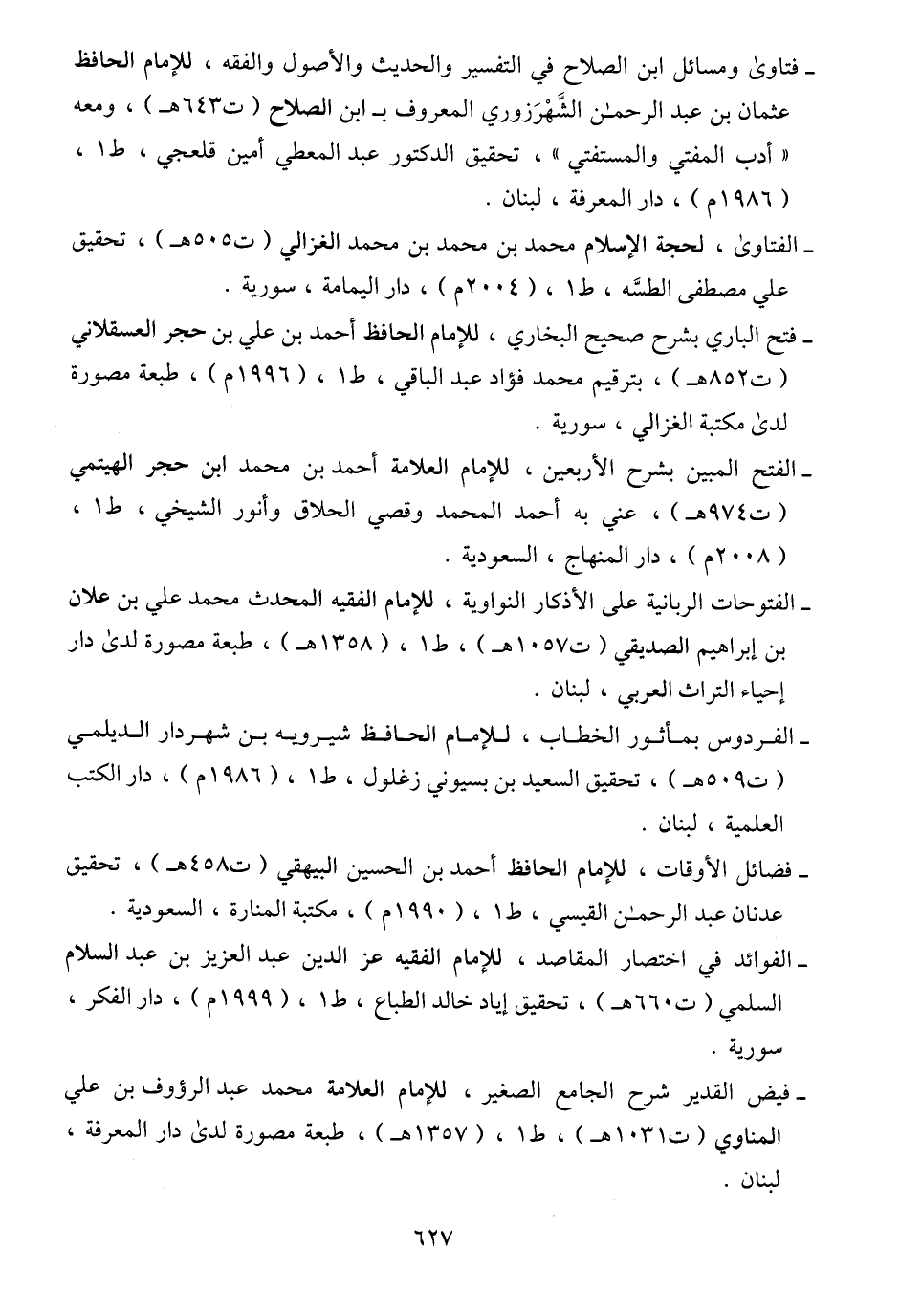 - الفوائد في اختصار المقاصد، للإمام الفقيه عز الدين عبد العزيز بن عبد السلام السلمي (ت ٦٦٠ هـ)، تحقيق إياد خالد الطباع، ط ١، (١٩٩٩ م)، دار الفكر، سورية.