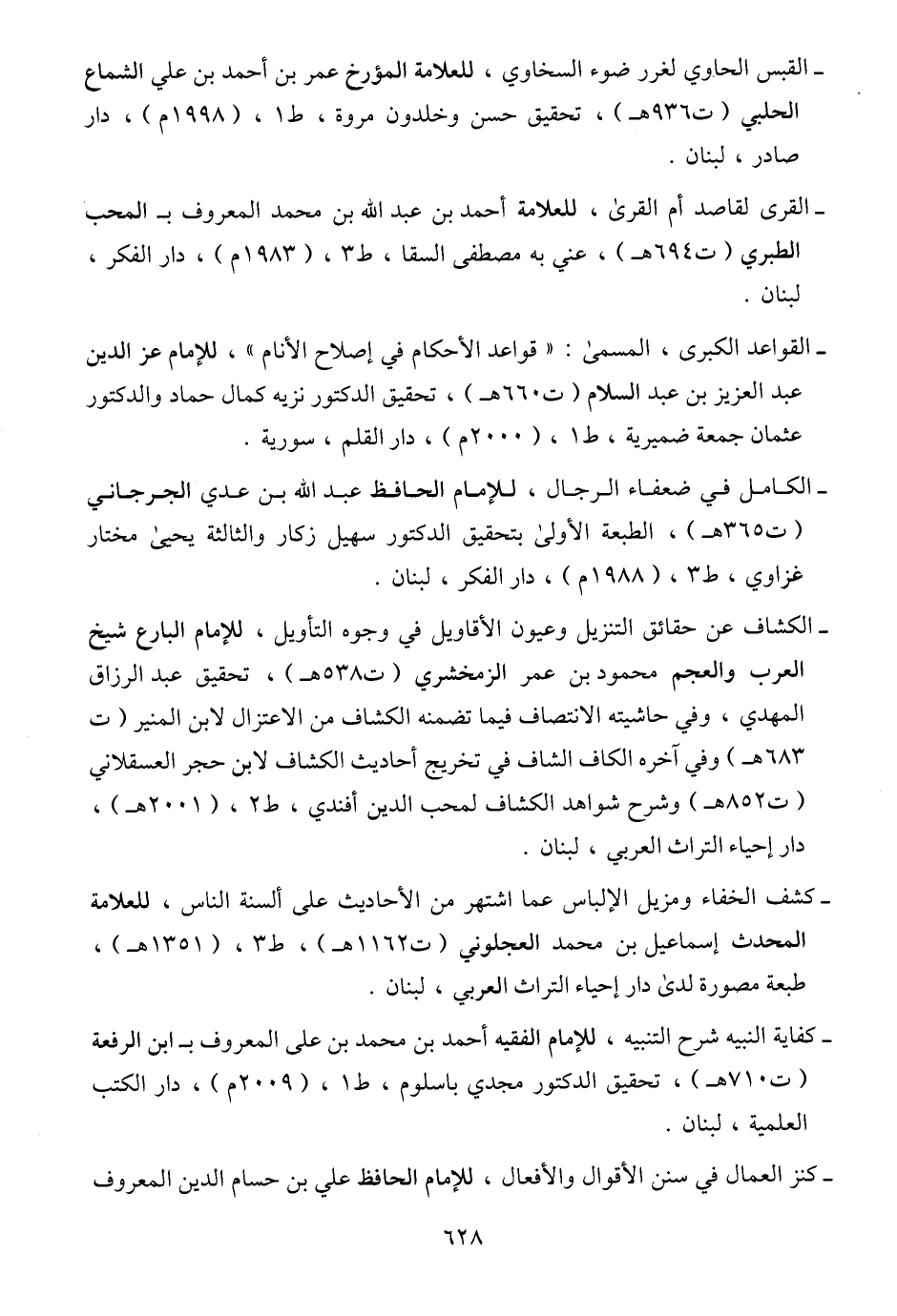 - القواعد الكبرى، المسمى: "قواعد الأحكام في إصلاح الأنام"، للإمام عز الدين عبد العزيز بن عبد السلام (ت ٦٦٠ هـ)، تحقيق الدكتور نزيه كمال حماد والدكتور عثمان جمعة ضميرية، ط ١، (٢٠٠٠ م)، دار القلم، سورية.