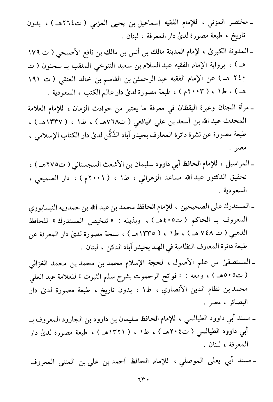 - مختصر المزني، للإمام الفقيه إسماعيل بن يحيى المزني (ت ٢٦٤ هـ)، بدون تاريخ، طبعة مصورة لدى دار المعرفة، لبنان.