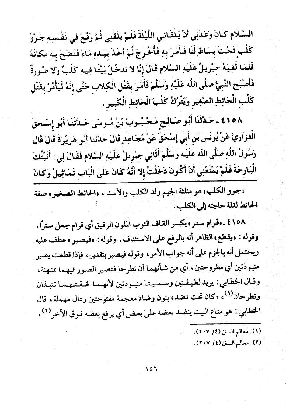 4158 - "قرام ستر" بكسر القاف الثوب الملون الرقيق أي قرام جعل سترًا، وقوله: "يقطع" الظاهر أنه بالرفع على الاستئناف، قوله: "فيصير" عطف عليه ويحتمل أنه بالجزم على أنه جواب الأمر، وقوله فيصير بتقدير، فإذا قطعت يصير منبوذتين أي مطروحتين، أي من شأنهما أن تطرحا فتصير الصور فيهما ممتهنة، وقال الخطابي: يريد لطيفتين وسميتا منبوذتين لأنهما لخفتهما تنبذان وتطرحان (¬1)، "كان تحت نضد" بنون وضاد معجمة مفتوحتين ودال مهملة، قال الخطابي: هو متاع البيت ينضد بعضه على بعض أي يرفع بعضه فوق الآخر (¬2)،