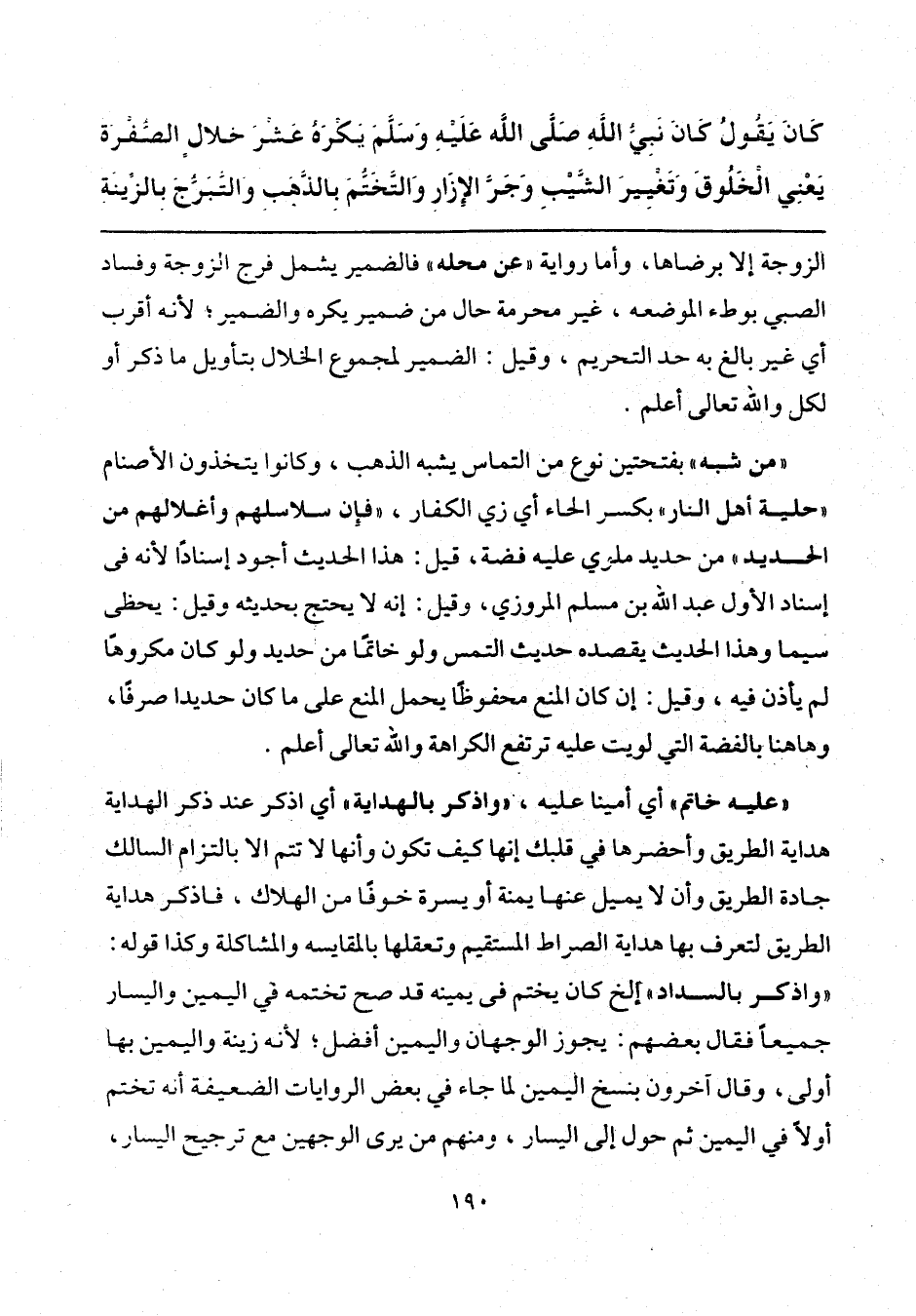 "من شبه" بفتحتين نوع من التماس يشبه الذهب، وكانوا يتخذون الأصنام "حلية أهل النار" بكسر الحاء أي زي الكفار، "فإن سلاسلهم وأغلالهم من الحديد" من حديد ملوي عليه فضة، قيل: هذا الحديث أجود إسنادًا لأنه في إسناد الأول عبد الله بن مسلم المروزي، وقيل: إنه لا يحتج بحديثه وقيل: يحظى سيما وهذا الحديث يقصده حديث التمس ولو خاتمًا من حديد ولو كان مكروهًا لم يأذن فيه، وقيل: إن كان المنع محفوظًا يحمل المنع على ما كان حديدا صرفًا، وهاهنا بالفضة التي لويت عليه ترتفع الكراهة والله تعالى أعلم.