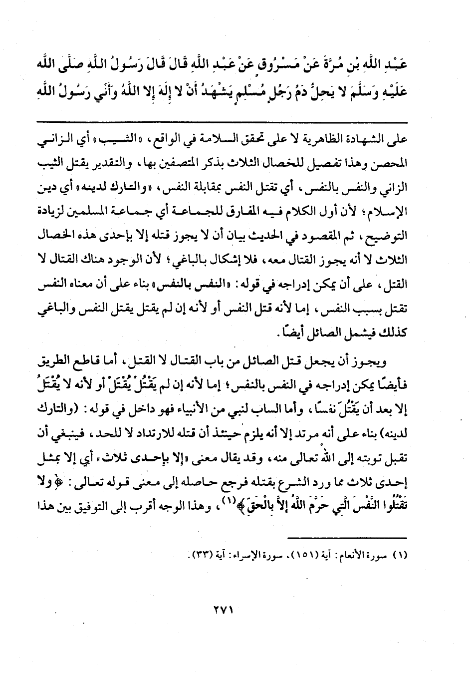 (¬1) سورة الأنعام: آية (151)، سورة الإسراء: آية (33).