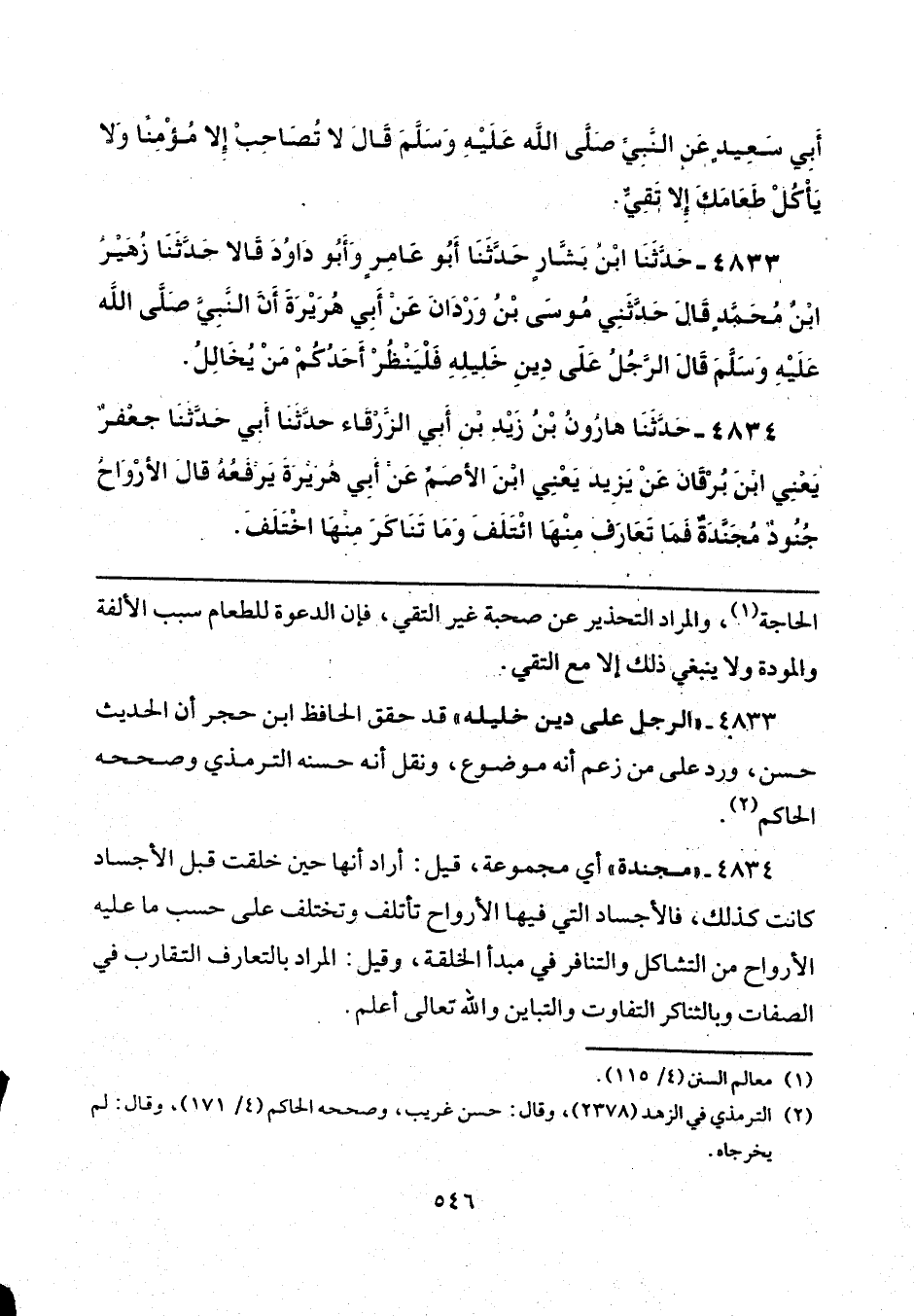 4833 - "الرجل على دين خليله" قد حقق الحافظ ابن حجر أن الحديث حسن، ورد على من زعم أنه موضوع، ونقل أنه حسنه الترمذي وصححه الحاكم (¬2).