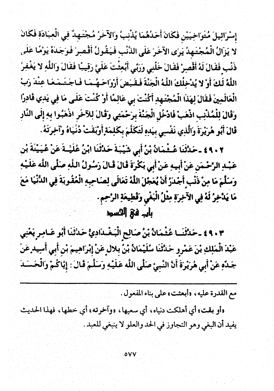 4903 - حَدَّثَنَا عُثْمَانُ بْنُ صَالِحٍ الْبَغْدَادِيُّ، حَدَّثَنَا أَبُو عَامِرٍ يَعْنِي عَبْدَ الْمَلِكِ بْنَ عَمْرٍو، حَدَّثَنَا سُلَيْمَانُ بْنُ بِلَالٍ، عَنْ إِبْرَاهِيمَ بْنِ أَبِي أَسِيدٍ، عَنْ جَدِّهِ، عَنْ أَبِي هُرَيْرَةَ، أَنَّ النَّبِيَّ صَلَّى اللهُ عَلَيْهِ وَسَلَّمَ قَالَ: إِيَّاكُمْ وَالْحَسَدَ،