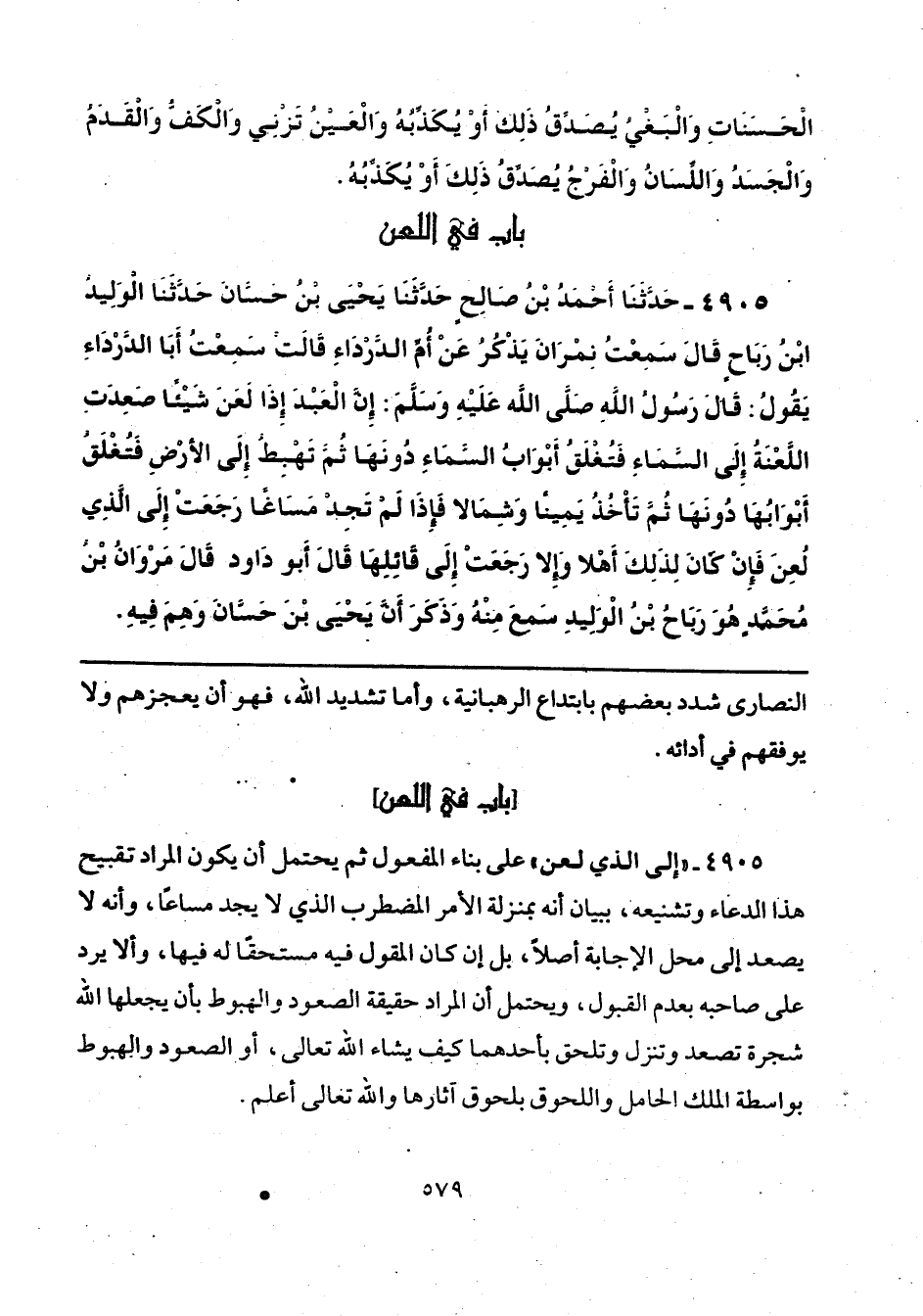 4905 - "إلى الذي لعن" على بناء المفعول ثم يحتمل أن يكون المراد تقبيح هذا الدعاء وتشنيعه، ببيان أنه بمنزلة الأمر المضطرب الذي لا يجد مساعًا، وأنه لا يصعد إلى محل الإجابة أصلًا، بل إن كان المقول فيه مستحقًّا له فيها، وألا يرد على صاحبه بعدم القبول، ويحتمل أن المراد حقيقة الصعود والهبوط بأن يجعلها الله شجرة تصعد وتنزل وتلحق بأحدهما كيف يشاء الله تعالى، أو الصعود والهبوط بواسطة الملك الحامل واللحوق بلحوق آثارها والله تعالى أعلم.