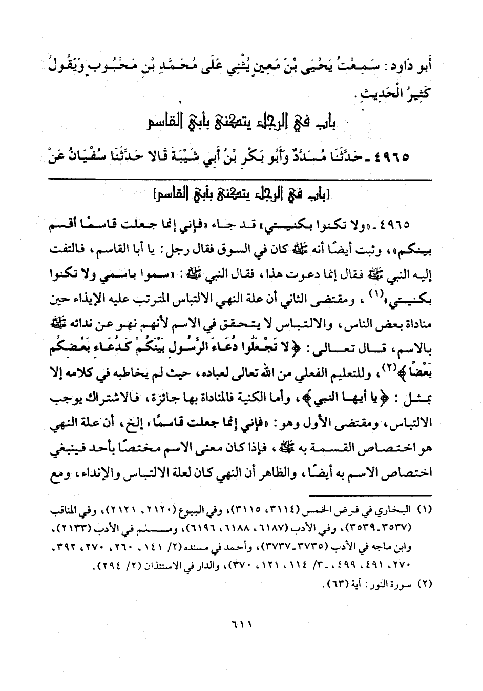 (¬1) البخاري في فرض الخمس (3114، 3115)، وفي البيوع (2120، 2121)، وفي المناقب (3537 - 3539)، وفي الأدب (6187، 6188، 6196)، ومسلم في الأدب (2133)، وابن ماجة في الأدب (3735 - 3737)، وأحمد في مسنده (2/ 141، 260، 270، 392، 270، 491، 499، 3/ 114، 121، 370)، والدار في الاستئذان (2/ 294).