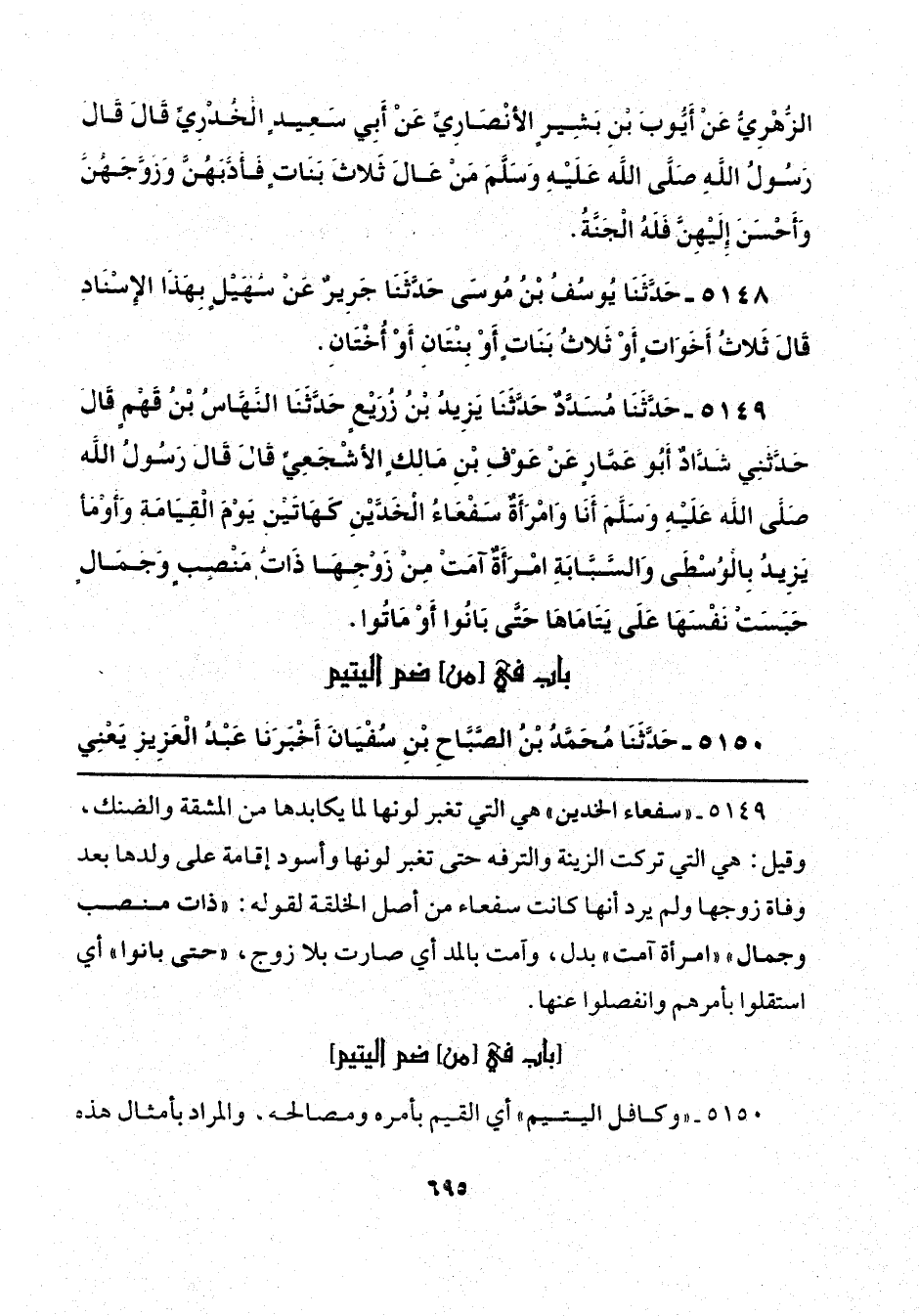 5150 - "وكافل اليتيم" أي القيم بأمره ومصالحه، والمراد بأمثال هذه