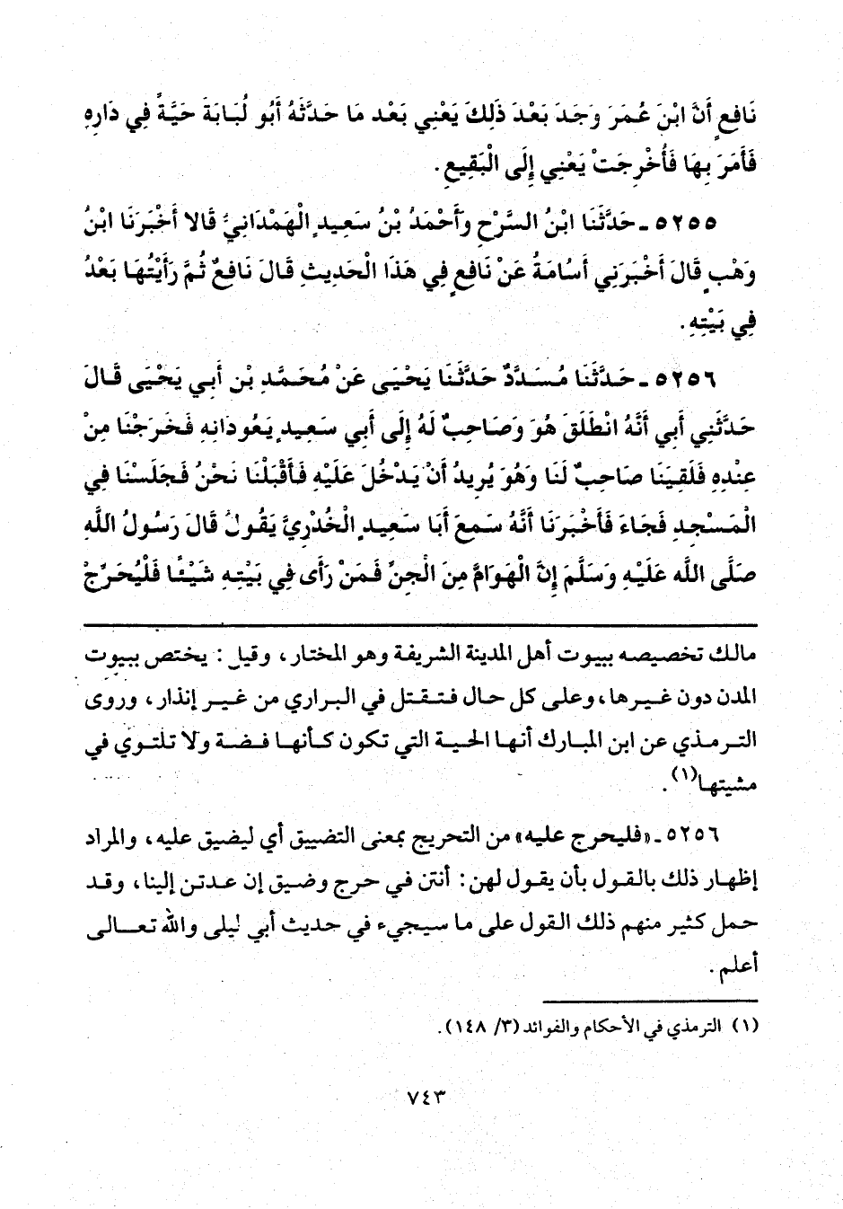 5256 - حَدَّثَنَا مُسَدَّدٌ، حَدَّثَنَا يَحْيَى، عَنْ مُحَمَّدِ بْنِ أَبِي يَحْيَى، قَالَ: حَدَّثَنِي أَبِي أَنَّهُ انْطَلَقَ هُوَ وَصَاحِبٌ لَهُ إِلَى أَبِي سَعِيدٍ يَعُودَانِهِ، فَخَرَجْنَا مِنْ عِنْدِهِ فَلَقِيَنَا صَاحِبٌ لَنَا وَهُوَ يُرِيدُ أَنْ يَدْخُلَ عَلَيْهِ، فَأَقْبَلْنَا نَحْنُ فَجَلَسْنَا فِي الْمَسْجِدِ فَجَاءَ فَأَخْبَرَنَا أَنَّهُ سَمِعَ أَبَا سَعِيدٍ الْخُدْرِيَّ يَقُولُ: قَالَ رَسُولُ اللَّهِ صَلَّى اللهُ عَلَيْهِ وَسَلَّمَ: «إِنَّ الْهَوَامَّ مِنَ الْجِنِّ، فَمَنْ رَأَى فِي بَيْتِهِ شَيْئًا فَلْيُحَرِّجْ