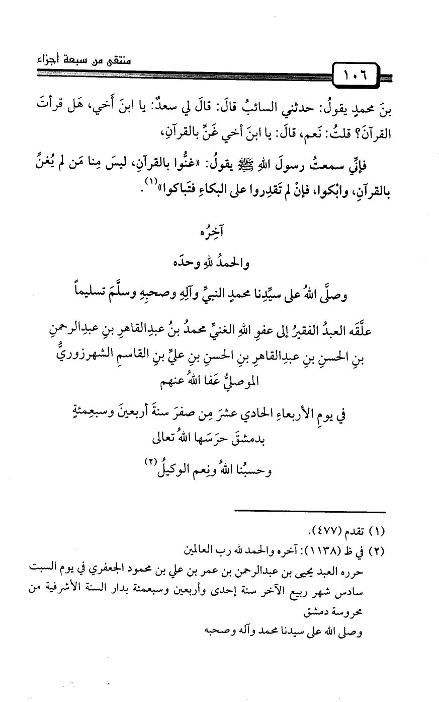 (¬3) في هامش النسختين: عبد الرحمن بن الغسيل في سداسيات الرازي: قال البغوي: حدثنا الحماني: حدثنا ابن الغسيل قال: رأيت سهل بن سعد يصفِّر لحيته.