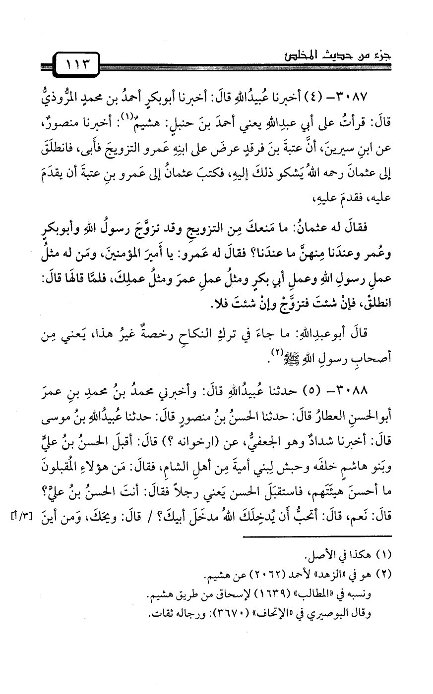 3086- (3) حدثنا عُبيدُاللهِ: حدثنا عبدُاللهِ بنُ الحسينِ الصيرفيُّ: حدثنا يحيى بنُ عثمانَ: حدثنا إسماعيلُ بنُ عيّاشٍ، عن طلحةَ بنِ زيدٍ، عن عبدِالملكِ العَرزَميِّ، عن طلحةَ بنِ مصرفٍ قالَ: قالَ عبدُاللهِ بنُ مسعودٍ: عَليكم بالأبكارِ، فإنَّهنَّ أشدُّ وُداً وأقلُّ / خِباً (¬3) .
