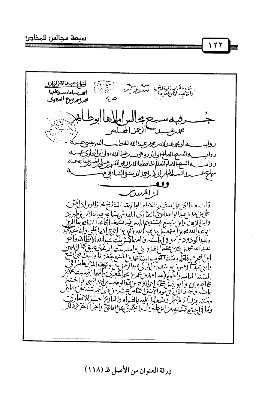 أَملاها أبوطاهرٍ محمدُ بنُ عبدِالرحمنِ المُخَلِّصُ