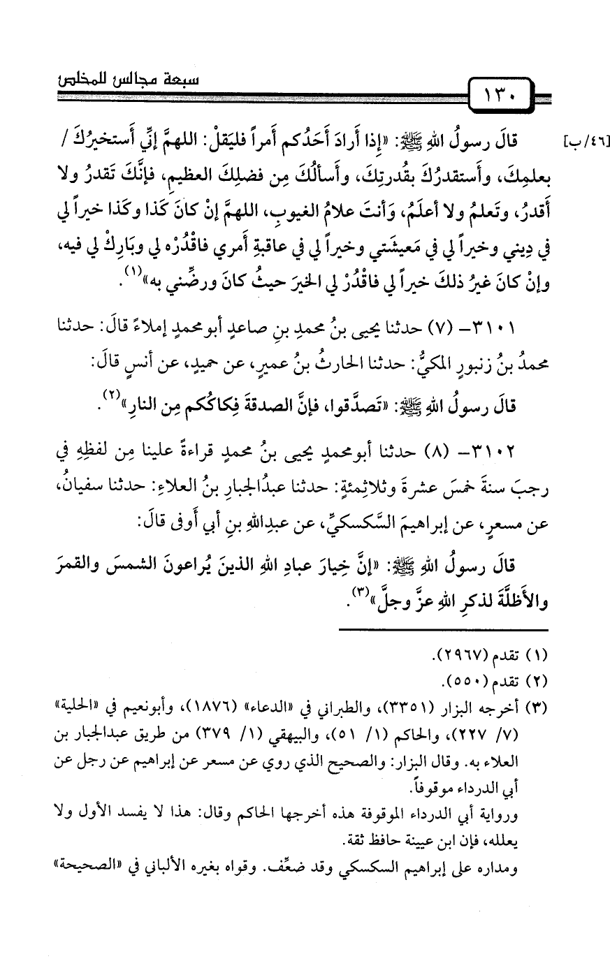 3098- (4) حدثنا عبدُاللهِ بنُ محمدٍ البغويُّ إملاءً في (¬1) يومِ الاثنينِ لِستٍّ خلونَ مِن صفرَ سنةَ ثلاثَ عشرةَ وثلاثِمئةٍ: حدثنا كاملُ بنُ طلحةَ أبويحيى الجَحدَريُّ: حدثنا حمادُ بنُ سلمةَ، عن خالدٍ الحذاءِ، عن عبدِاللهِ بنِ شقيقٍ، عن ابنِ أبي الجَدعاءِ قالَ: