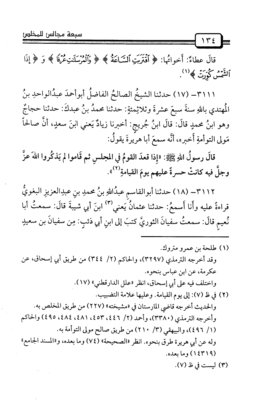 3110- (16) حدثنا الشيخُ الصالحُ أحمدُ بنُ عبدِاللهِ بنِ سيفٍ أبوبكرٍ السِّجستانيُّ: حدثنا يونسُ بنُ عبدِالأَعلى: أخبرنا ابنُ وهبٍ قالَ: أخبرني (¬4) طلحةُ بنُ عَمرو، عن عطاءٍ، عن ابنِ عباسٍ،