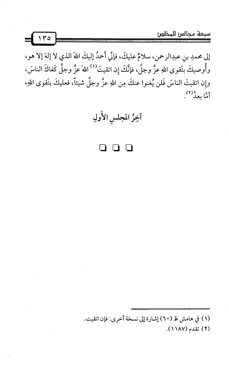 قالَ رسولُ اللهِ صلى الله عليه وسلم: «إِذا قعدَ القومُ في المجلسِ ثم قَاموا لم يَذكُروا اللهَ عزَّ وجلَّ فيه كانتْ حسرةً عليهم يومَ القيامةِ (¬2) » .