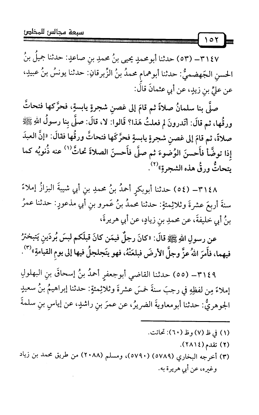 3145- (51) حدثنا عبدُاللهِ بنُ محمدِ بنِ عبدِالعزيزِ: حدثنا أبوبكرِ بنُ أبي شيبةَ: حدثنا زيدُ بنُ الحُبابِ: حدثني ثابتُ بنُ قيسٍ أبوالغصنِ: حدثني أبوسعيدٍ المقبريُّ: حدثني أبوهريرةَ، عن أسامةَ بنِ زيدٍ قالَ: