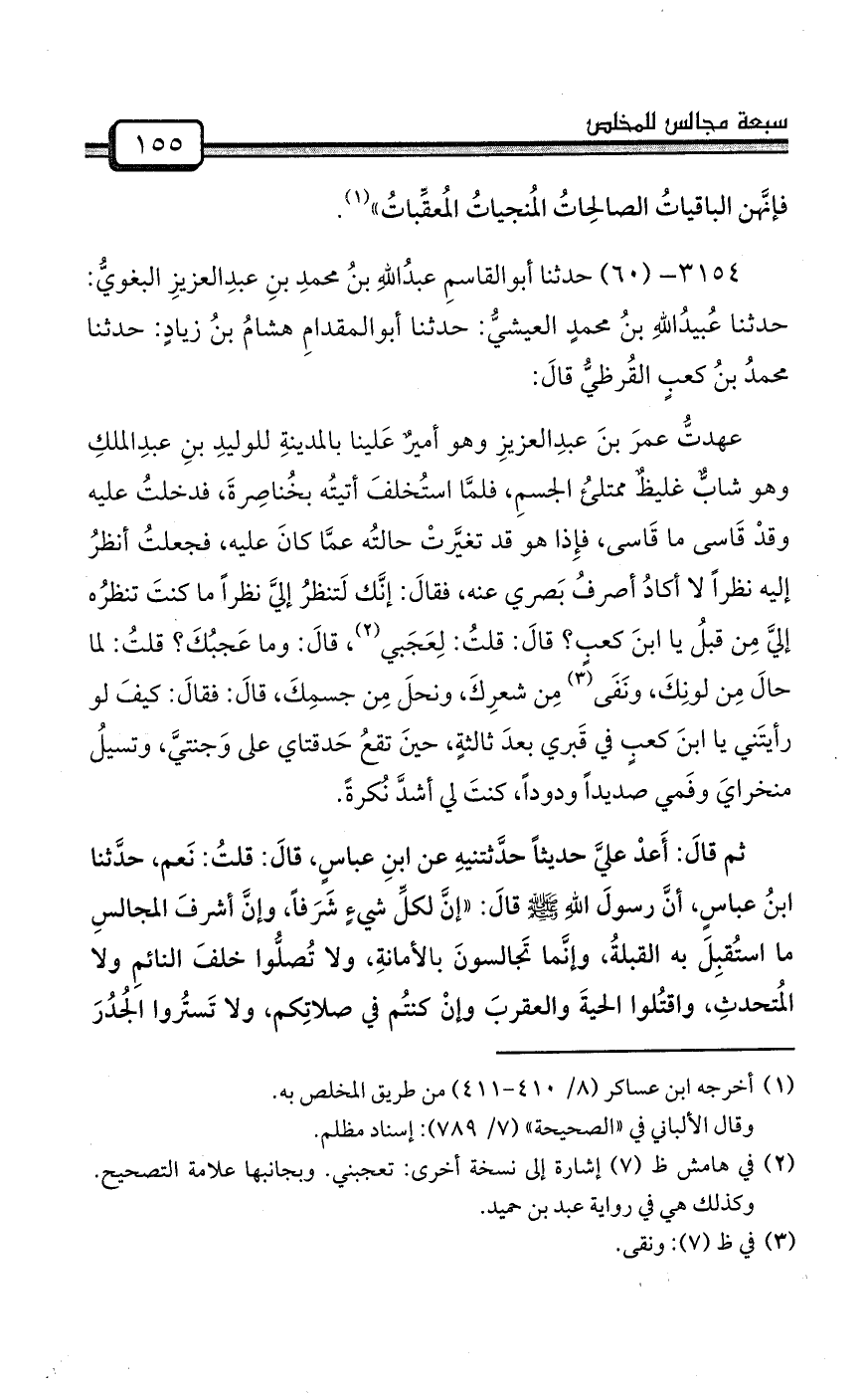 3153- (59) حدثنا أبوأحمدَ عبدُالواحدِ بنُ المُهتدي باللهِ إملاءً: حدثنا أبوجعفرٍ الصالحيُّ الهاشميُّ أحمدُ بنُ القاسمِ بنِ طاهرِ بنِ إسماعيلَ بنِ صالحِ بنِ عليِّ بنِ عبدِاللهِ بنِ العباسِ قالَ: حدثني أبي / القاسمُ: حدثني أبي طاهرٌ: حدثني أبي إسماعيلُ: حدثني أبي صالحٌ: حدثني أبي عليٌّ: حدثني أبي عبدُاللهِ قالَ: