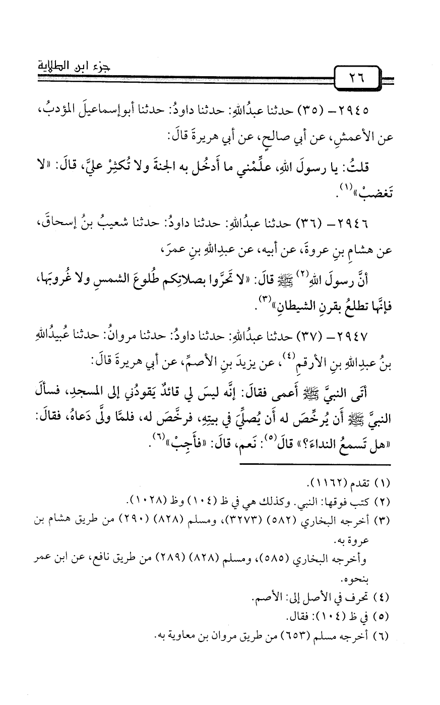2944- (34) حدثنا عبدُاللهِ: حدثنا داودُ بنُ رشيدٍ: / حدثنا سعيدُ بنُ مسلمةَ: حدثنا إسماعيلُ بنُ أميةَ، عن نافعٍ، عن ابنِ عمرَ قالَ:
