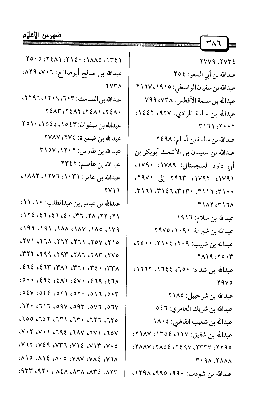 عبد الله بن دينار: 290، 291، 583، 667، 1168، 1277، 1435، 1745، 2305، 2786
