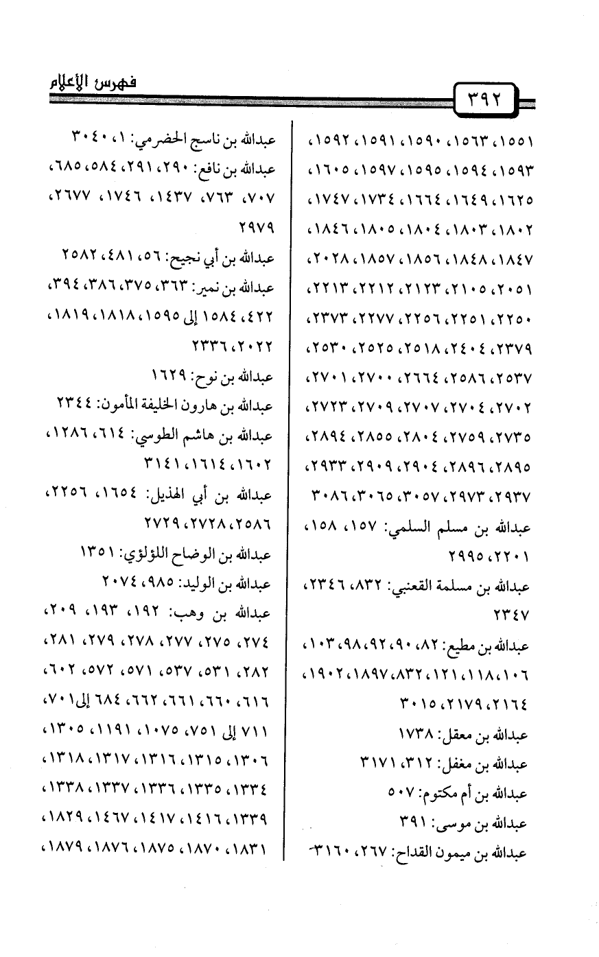 عبد الله بن مسعود: 132، 144، 146، 176، 177، 200، 246، 356، 357، 533، 566، 582، 612، 669، 700، 708، 709، 727، 744، 770، 781، 795، 808، 858، 915، 919، 936، 962، 979، 987، 1002، 1054، 1077، 1078، 1106، 1133، 1137، 1171، 1183، 1210، 1227، 1280، 1321، 1322، 1351، 1423، 1545،