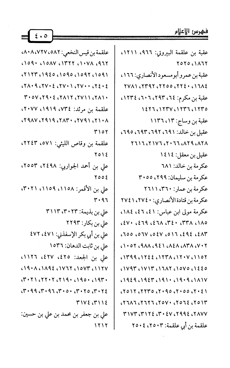 عطاء بن أبي رباح: 42، 167، 191، 271، 284، 459، 474، 481، 544، 597، 641، 657، 662، 680، 705، 714، 791، 931، 966، 1024، 1033، 1232، 1240، 1311، 1352، 1364، 1378، 1652، 1660، 1843، 1885، 1915، 1929، 2006، 2096، 2102، 2167، 2174، 2201، 2301، 2491، 2495، 2545، 2581، 2582، 2833، 2838، 2915، 2992، 3108، 3110، 3121