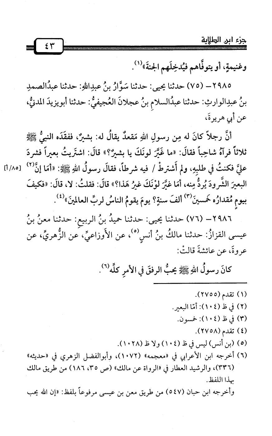 2983- (73) حدثنا يحيى: حدثنا أحمدُ بنُ عبدِالرحمنِ بنِ الفضلِ (¬3) بحرانَ: حدثنا عثمانُ بنُ عبدِالرحمنِ الحرانيُّ، عن الحسنِ بنِ حيٍّ، عن سهيلِ بنِ أبي صالحٍ، عن أبيه، عن أبي هريرةَ قالَ: