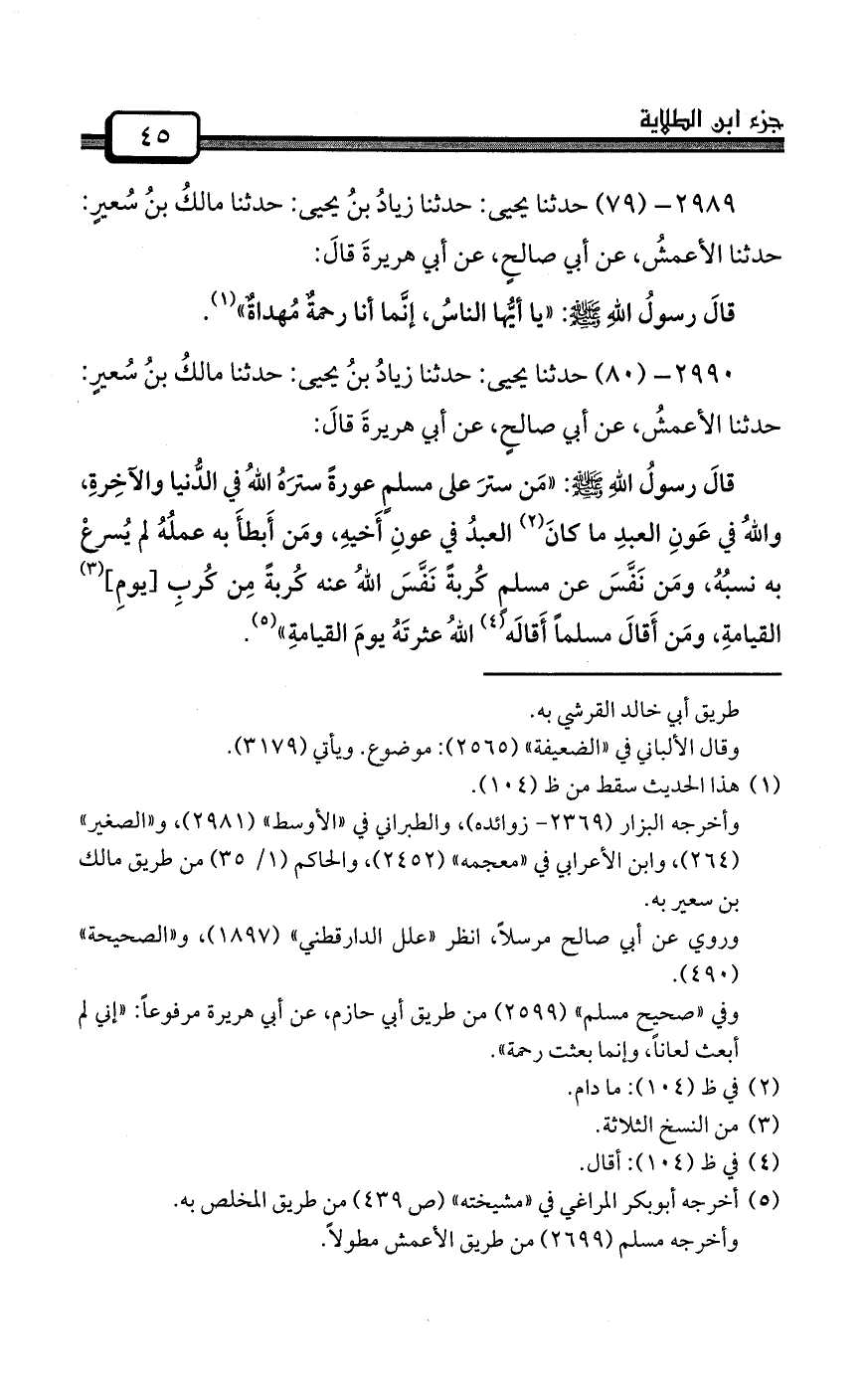 2987- (77) حدثنا يحيى: حدثنا حميدُ بنُ الربيعِ: حدثنا يحيى بنُ يمان: حدثنا سفيانُ، عن علقمةَ بنِ مرثدٍ، عن ابنِ بريدةَ، عن أبيه،