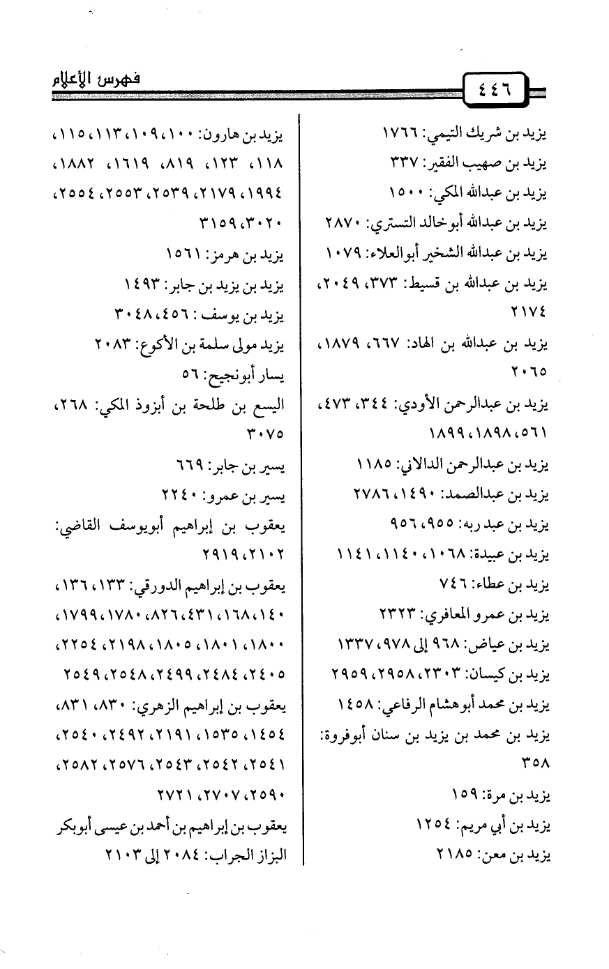 يزيد بن زريع: 95، 99، 112، 122، 172، 230، 294، 300، 332، 582، 1224، 1327، 1449، 1502، 1537، 1938، 2067، 2410، 2905، 2969، 3057