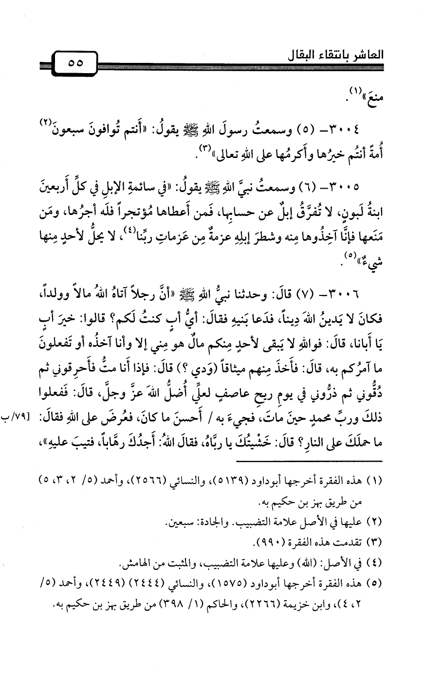 (¬3) هذه الفقرة أخرجها أحمد (5/ 3، 5) من طريق بهز بن حكيم به.