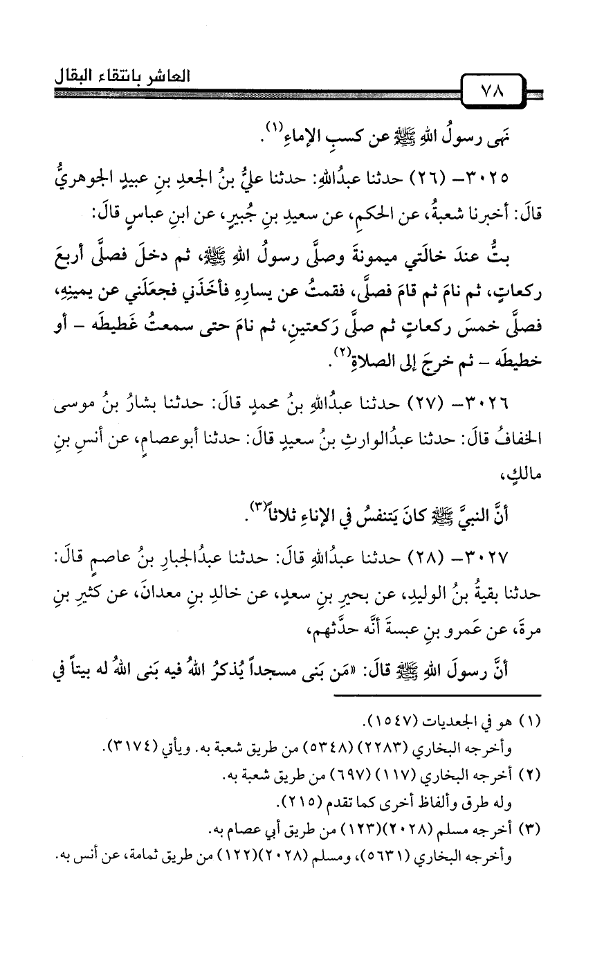 3024- (25) حدثنا عبدُاللهِ قالَ: حدثنا عليُّ بنُ الجعدِ قالَ: أخبرنا شعبةُ، عن محمدِ بنِ جُحادةَ، عن أبي حازمٍ، عن أبي هريرةَ قالَ: