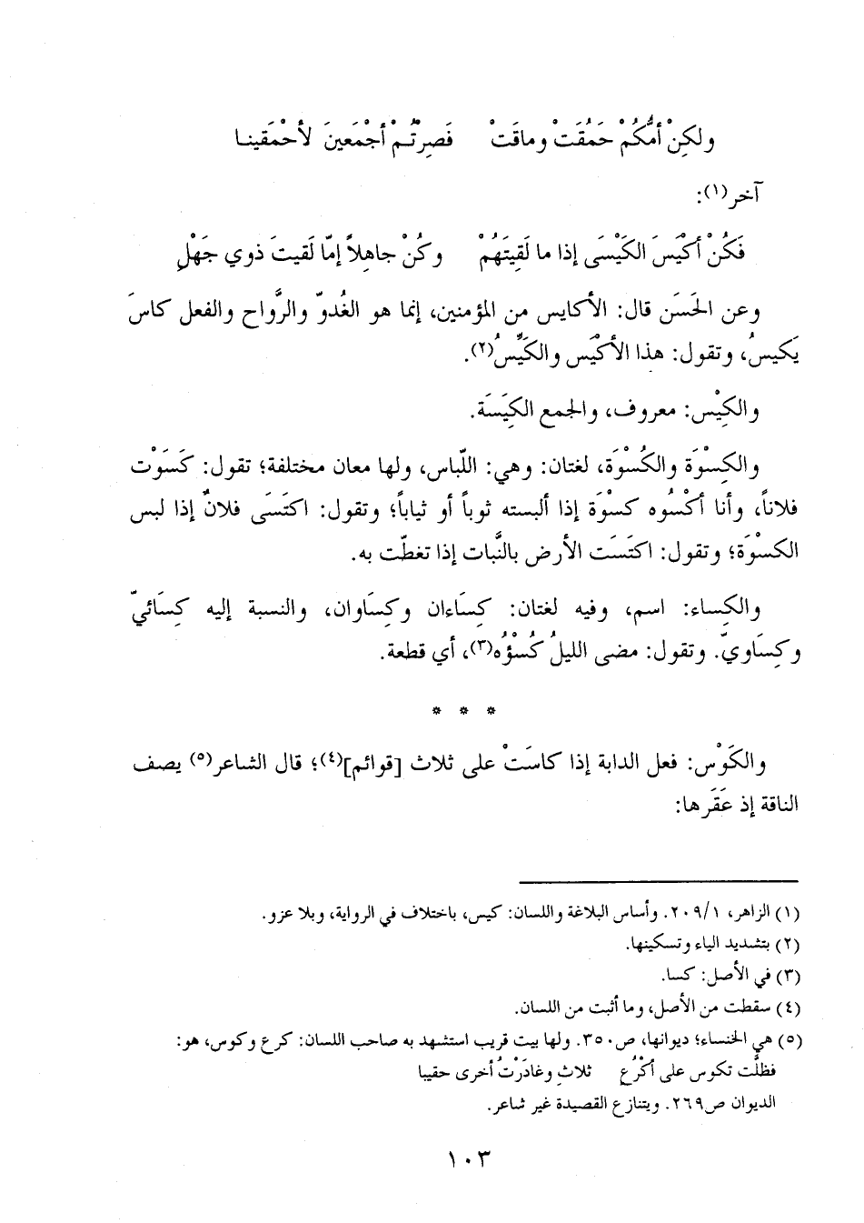 وعن الحسن قال: الأكايس من المؤمنين، إنما هو الغدو والرَّواح والفعل كاس يكيس، وتقول: هذا الأكيْس والكيِّس.