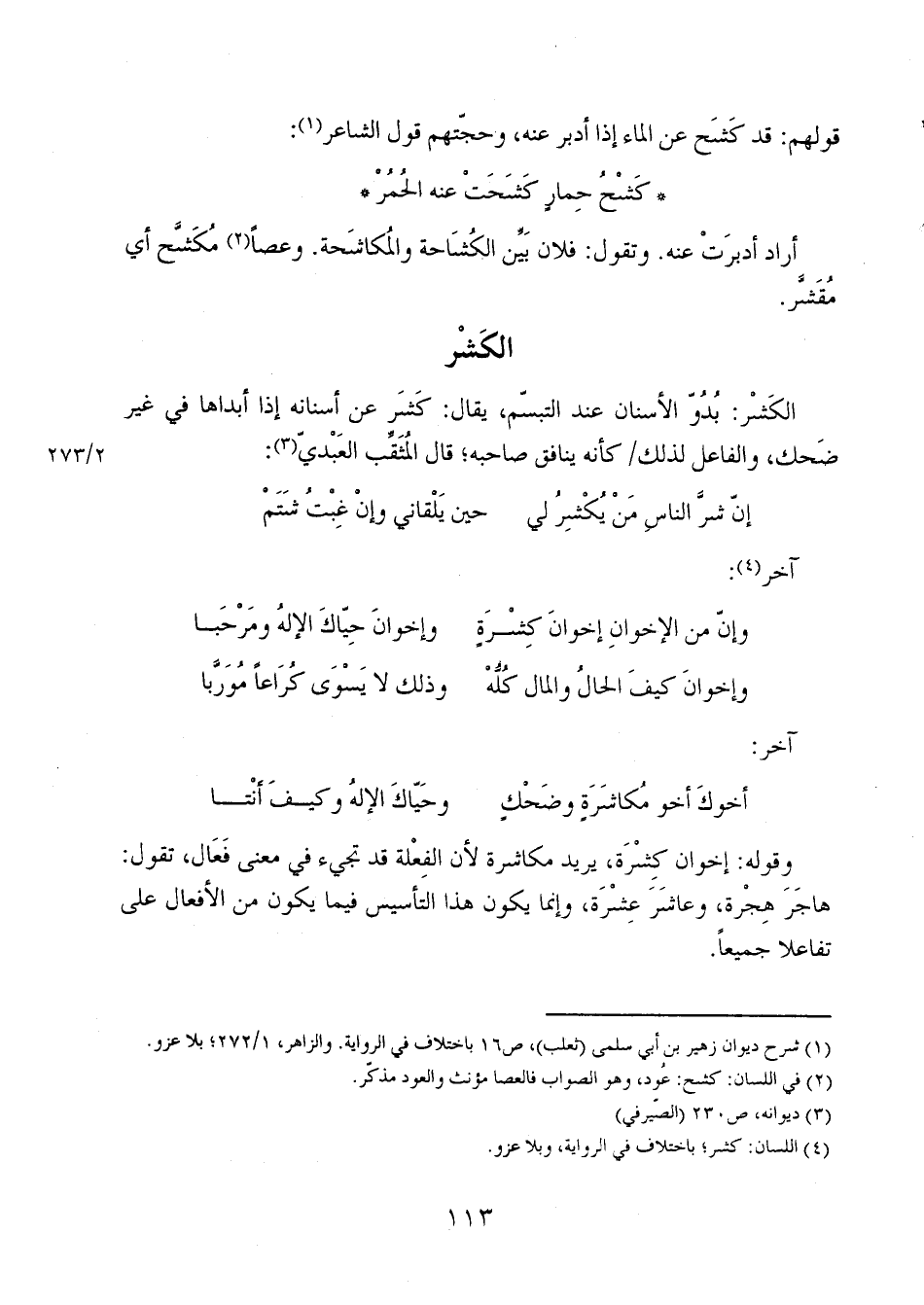 وقوله: إخوان كشرة، يريد مكاشرة لأن الفِعلة قد تجيء في معنى فعال، تقول: هاجر هجرة، وعاشر عشرة، وإنما يكون هذا التأسيس فيما يكون من الأفعال على تفاعلا جميعاً.