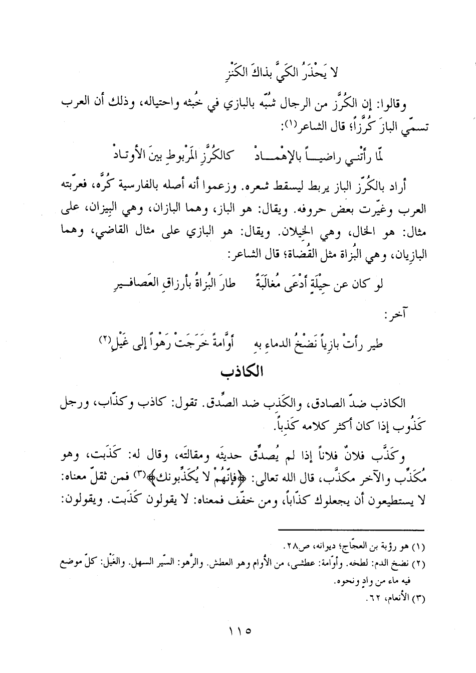 وقالوا: إن الكرز من الرجال شبه بالبازي في خبثه واحتياله، وذلك أنالعرب تسمي الباز كرَّزاً؛ قال الشاعر: