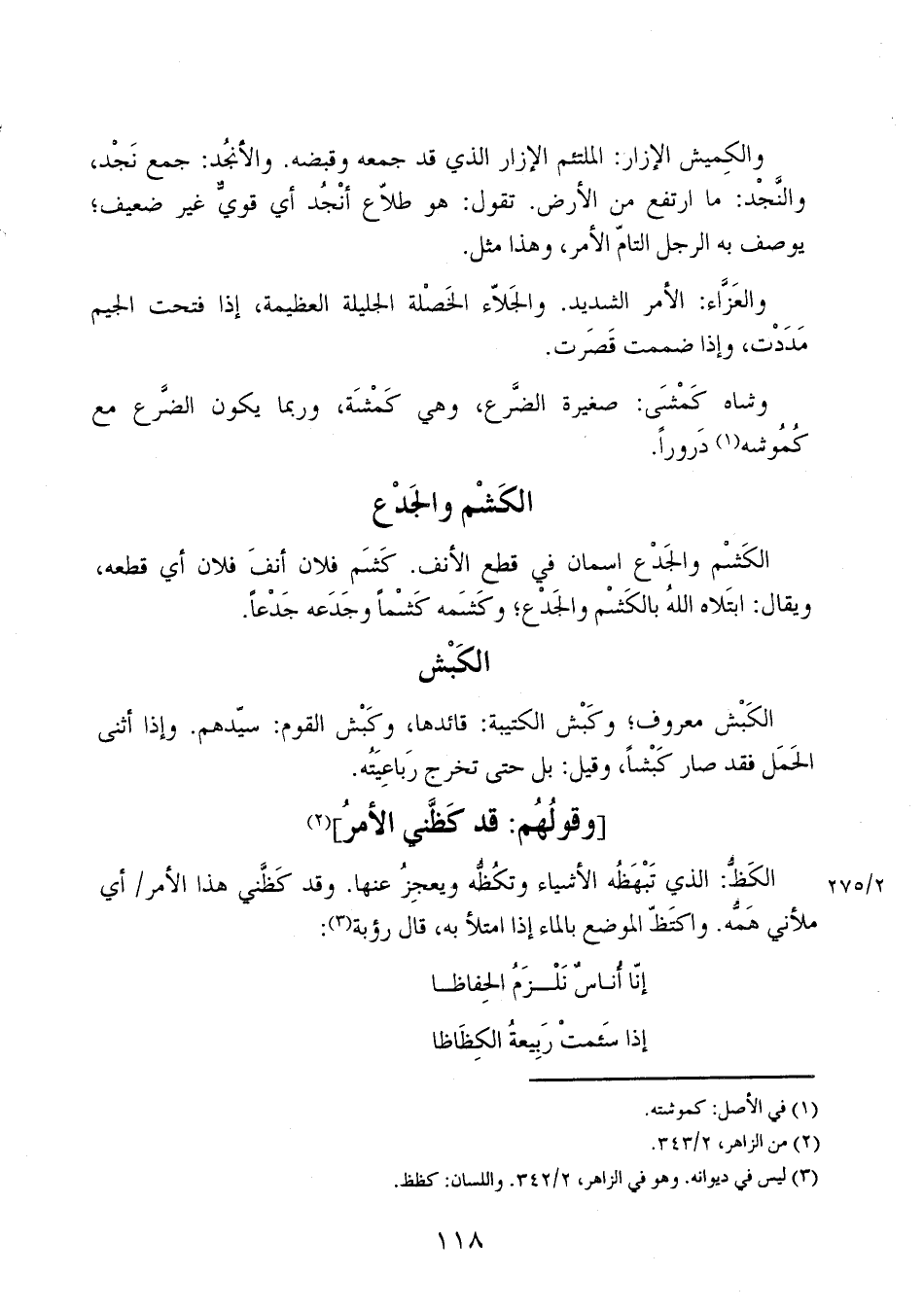 والكميش الإزار: الملتئم الإزار الذي قد جمعه وقبضه. والأنجد: جمع نجد، والنَّجد: ما ارتفع من الأرض. تقول: هو طلاع أنجد أي قوي غير ضعيف؛ يوصف به الرجل التام الأمر، وهذا مثل.