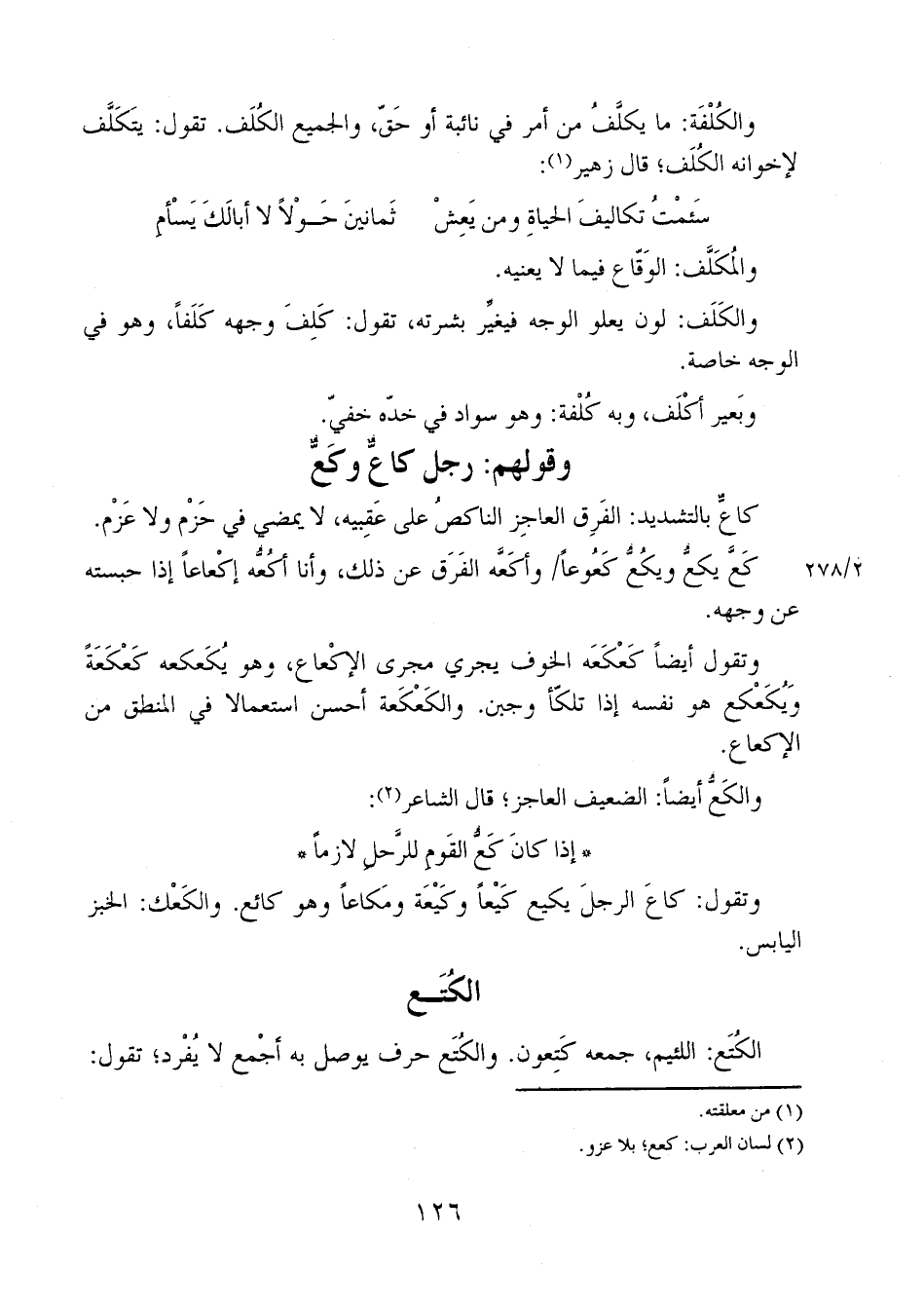والكع أيضاً: الضعيف العاجز؛ قال الشاعر: