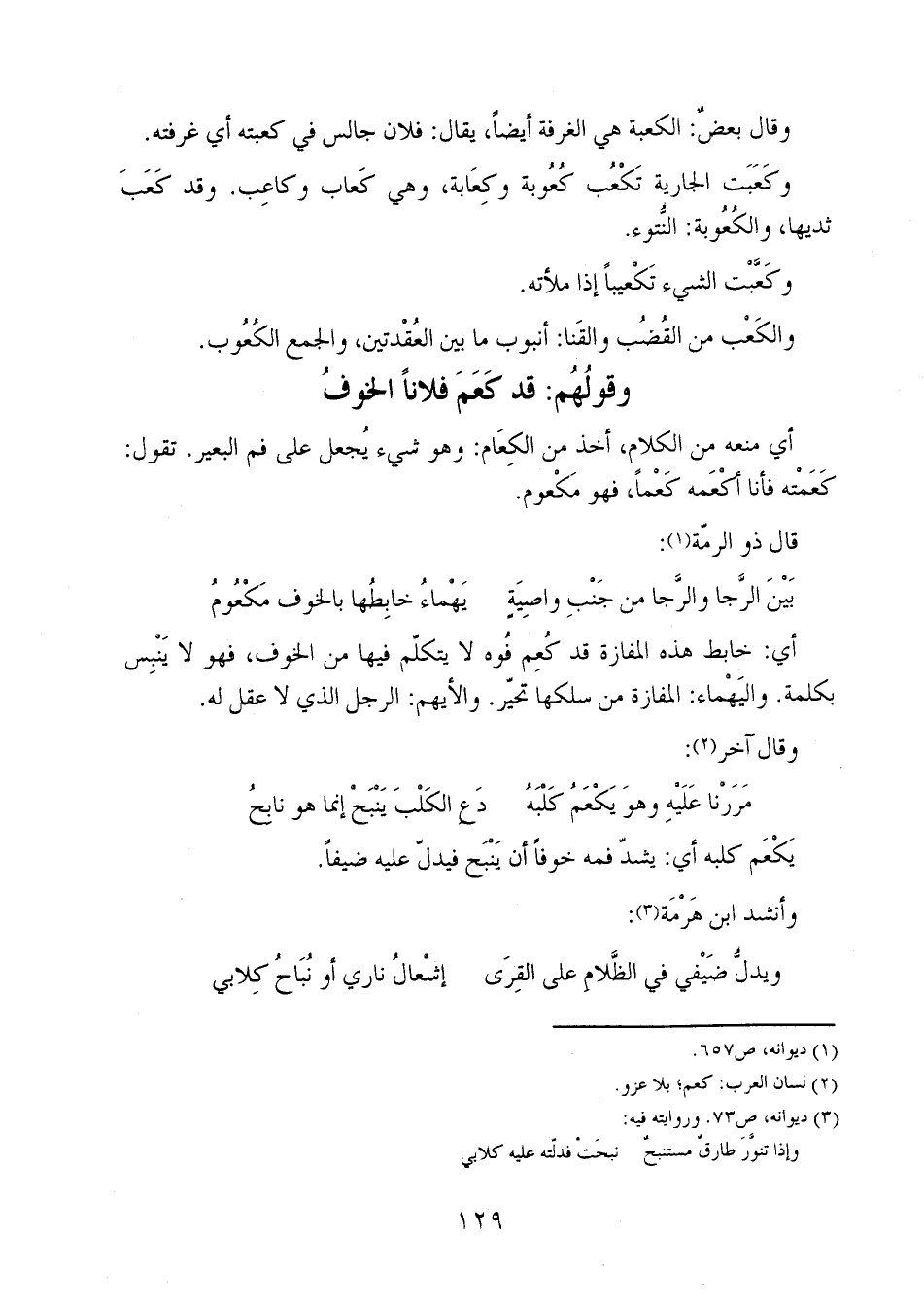 يكعم كلبه أي: يشد فمه خوفاً أن ينبح فيدل عليه ضيفاً.