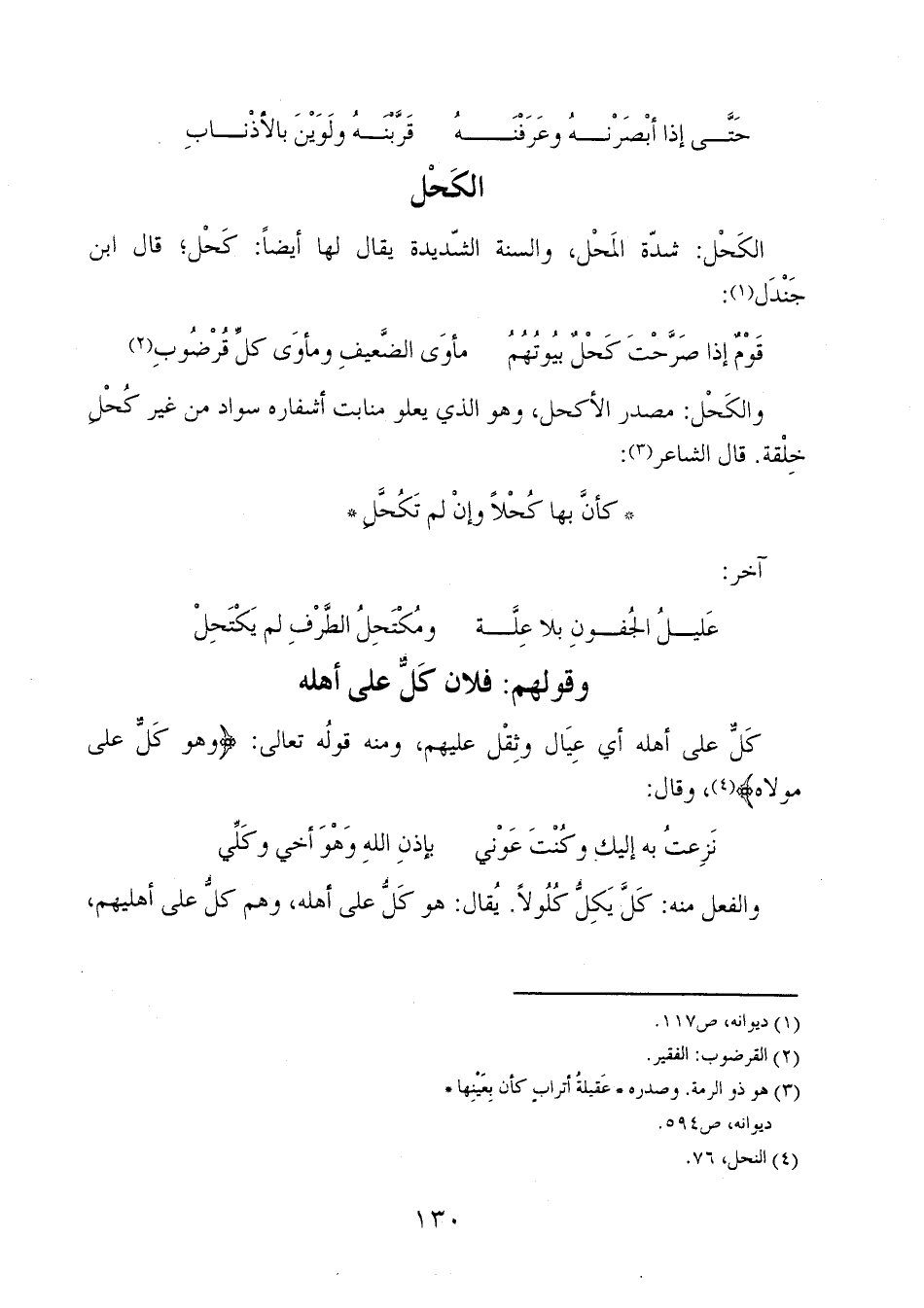 كل على أهله أي عيال وثقل عليهم، ومنه قوله تعالى: {وَهُوَ كَلٌّ عَلَى مَوْلاهُ}، وقال:
