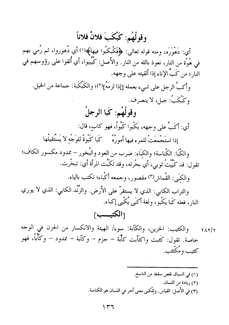 أي: دهوره، ومنه قوله تعالى: {فَكُبكبُوا فيها} أي دهوروا، ثم رمي بهم في هوة من النار، نعوذ بالله من النار. والأصل: كُبِّببوا، أي ألقوا على رؤوسهم في النار؛ من كب الإناء إذا ألقيته على وجهه.