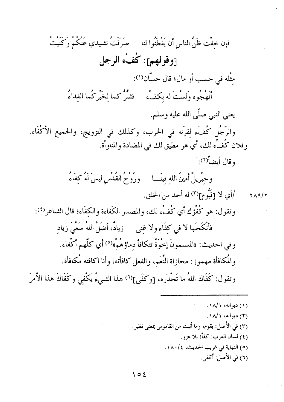 وتقول: هو كفؤك أي كفء لك، والمصدر الكفاءة والكفاء؛ قال الشاعر: